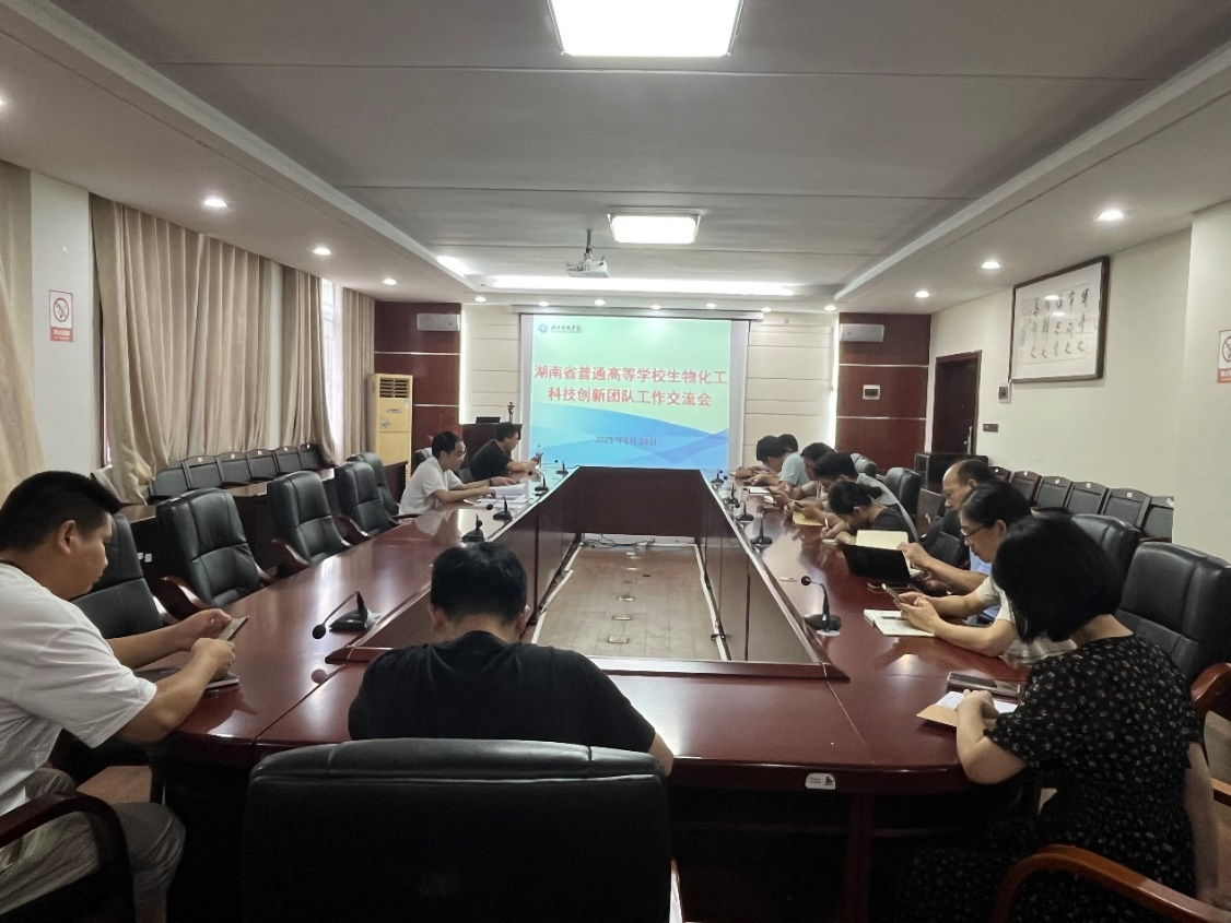 (本网讯 汪美凤 刘乐)8月28日下午,湖南省普通高等学校生物化工科技创新团队于逸夫楼320会议室召开工作推进会。生物化工科技创新团队全体成员参加会议,会议由生物化工团队负责人覃佐东主持。