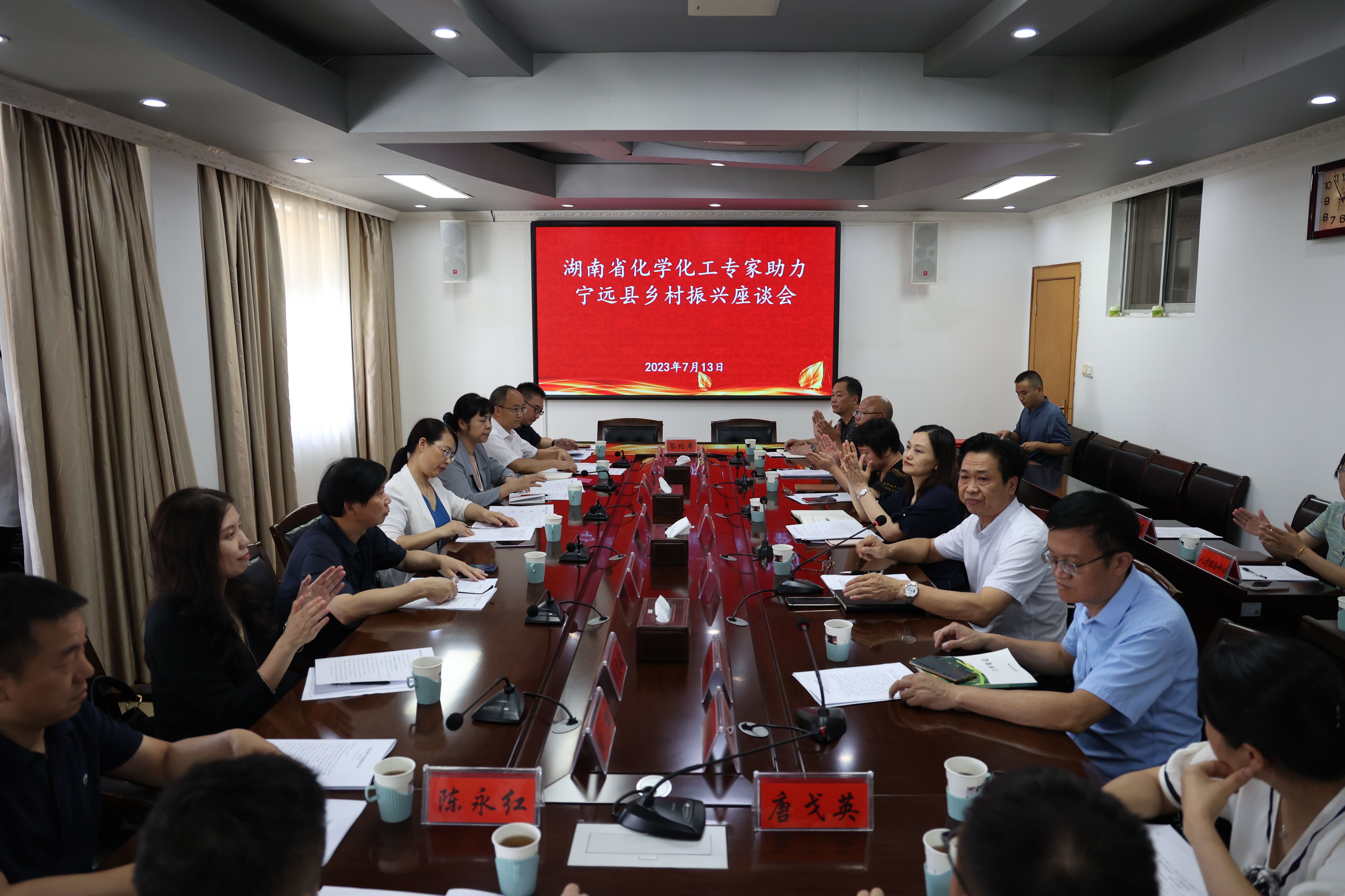 本网讯(骆鹰)为了助力宁远县乡村振兴,7月13日上午,Beat365唯一官方网站副校长郑银芳教授带队,携手湖南省化学化工学会专家赴宁远县开展乡村振兴专题调研。宁远县委常委、组织部长李玲、副县长欧晋平、县科工局、林业局、乡村振兴局等有关单位负责人参加了座谈会。