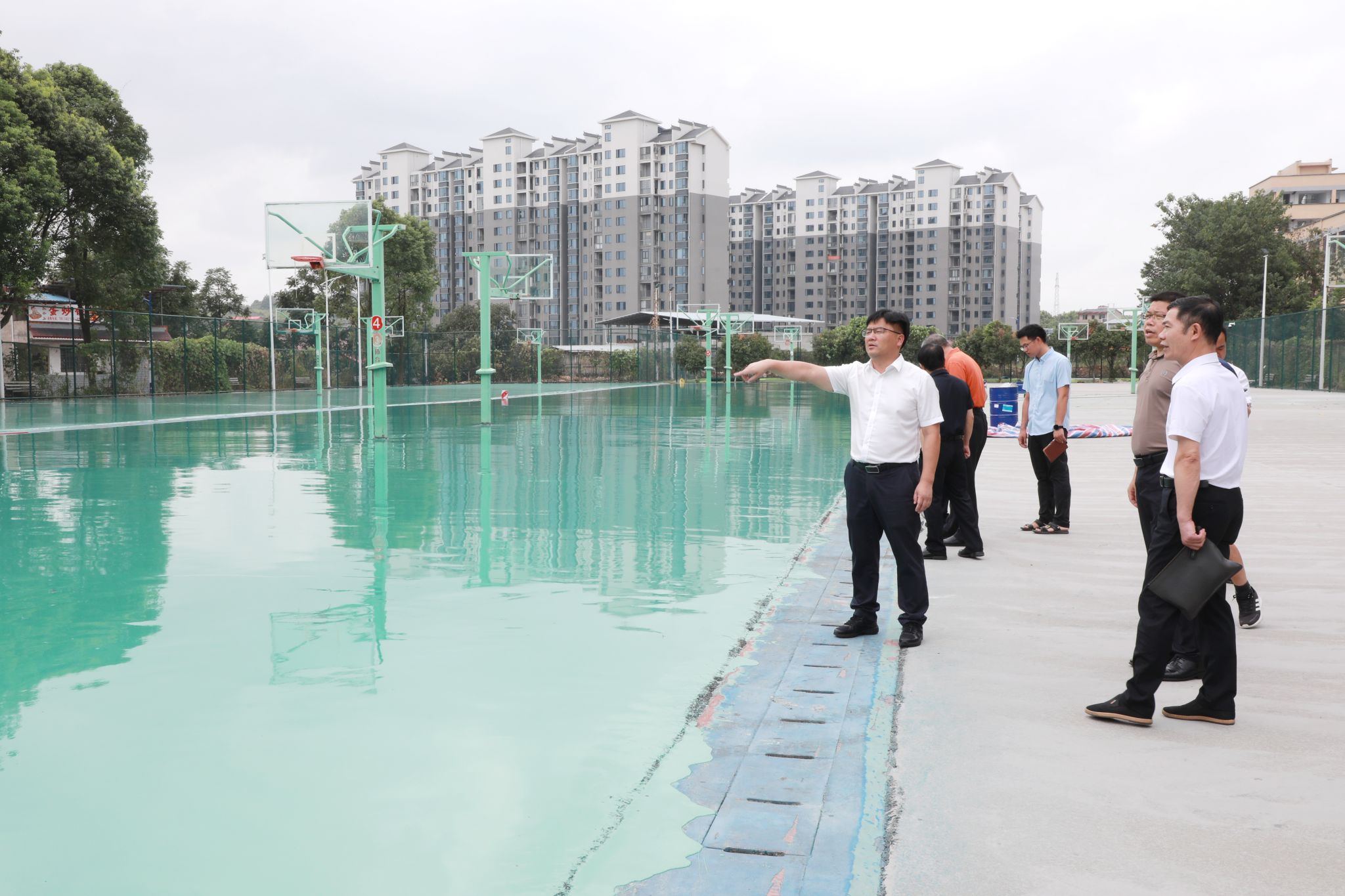 本网讯 8月14日,党委书记李钢、校长黄创霞,校领导李常健、吴小林、何福林、郑银芳、何海前往田径场、宿舍等地检查指导校园管理服务和提质改造工作。