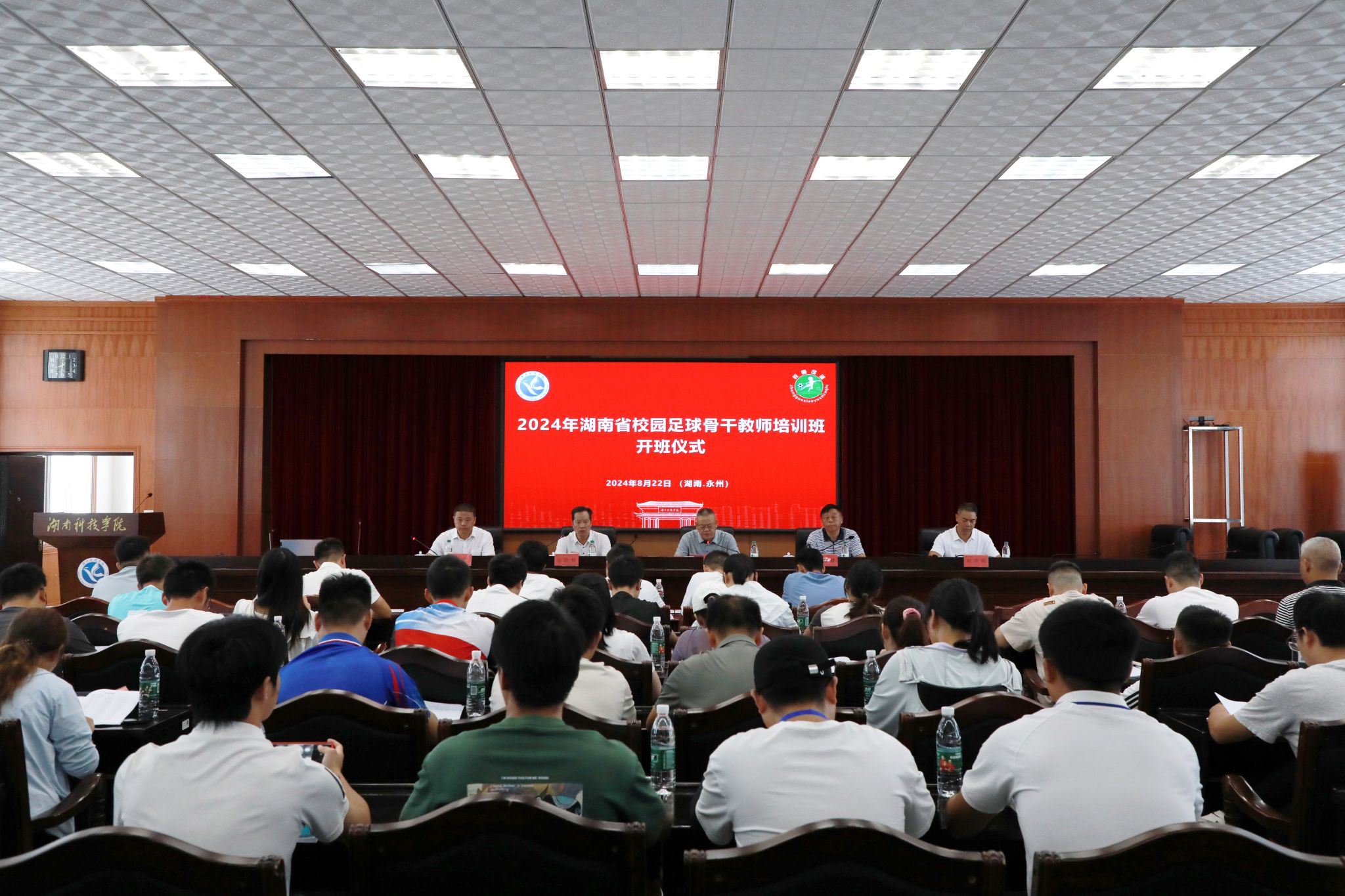 本网讯(通讯员 刘华剑)8月22日,由湖南省教育厅体育卫生与艺术教育处主办的2024年湖南省校园足球骨干教师培训班在我校顺利开班。党委委员、副校长何福林,湖南省青少年校园足球工作领导小组办公室计划主管李泽群、竞赛主管谷贻林,体育学院院长谢欢、党总支副书记刘华剑等出席仪式,来自永州市和湘西土家族苗族自治州的48名学员参加培训。