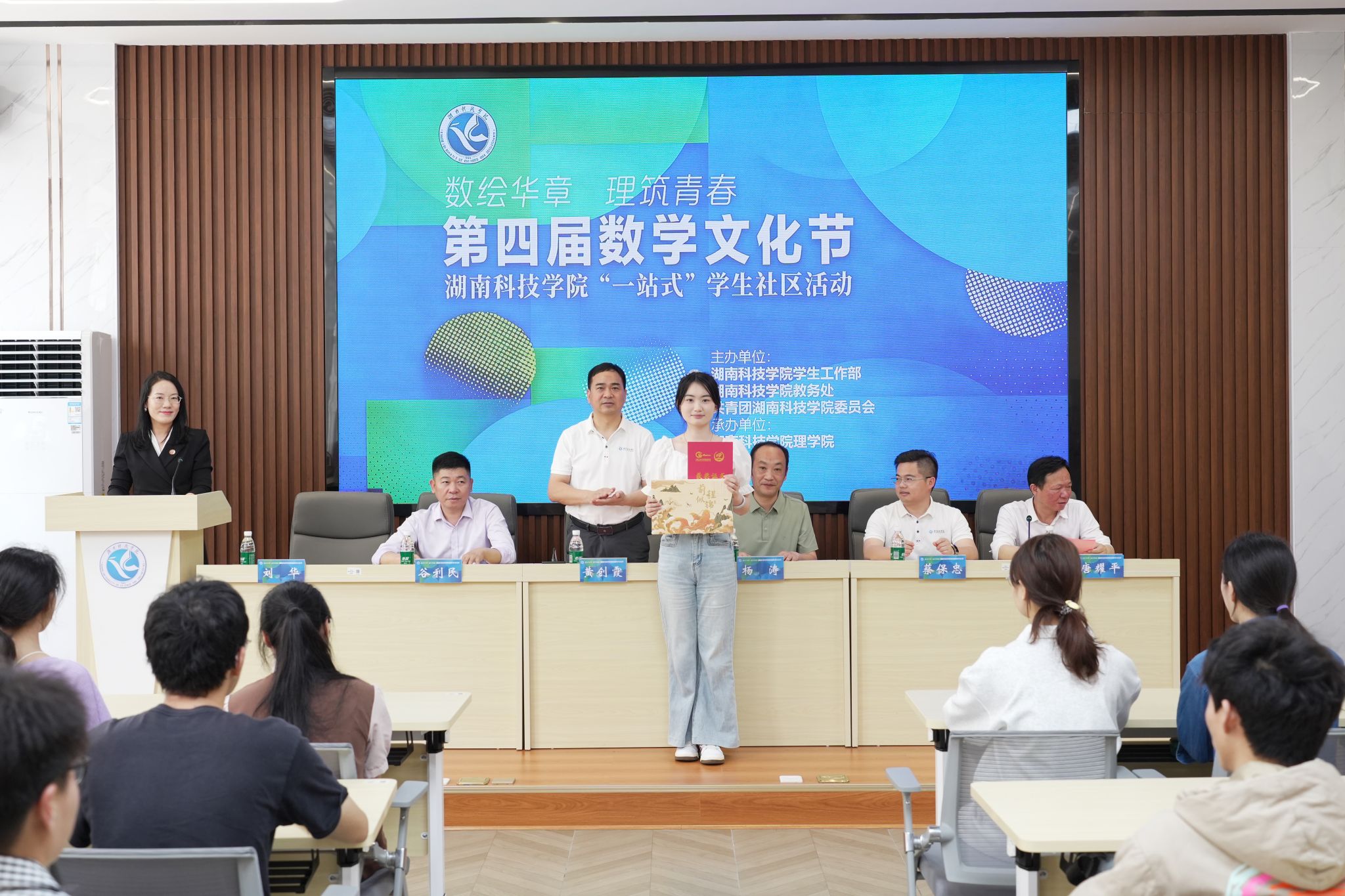 在颁奖仪式上,相关领导为2025年全国大学生数学建模竞赛一等奖、湖南省数学建模竞赛一等奖获奖团队代表颁奖。