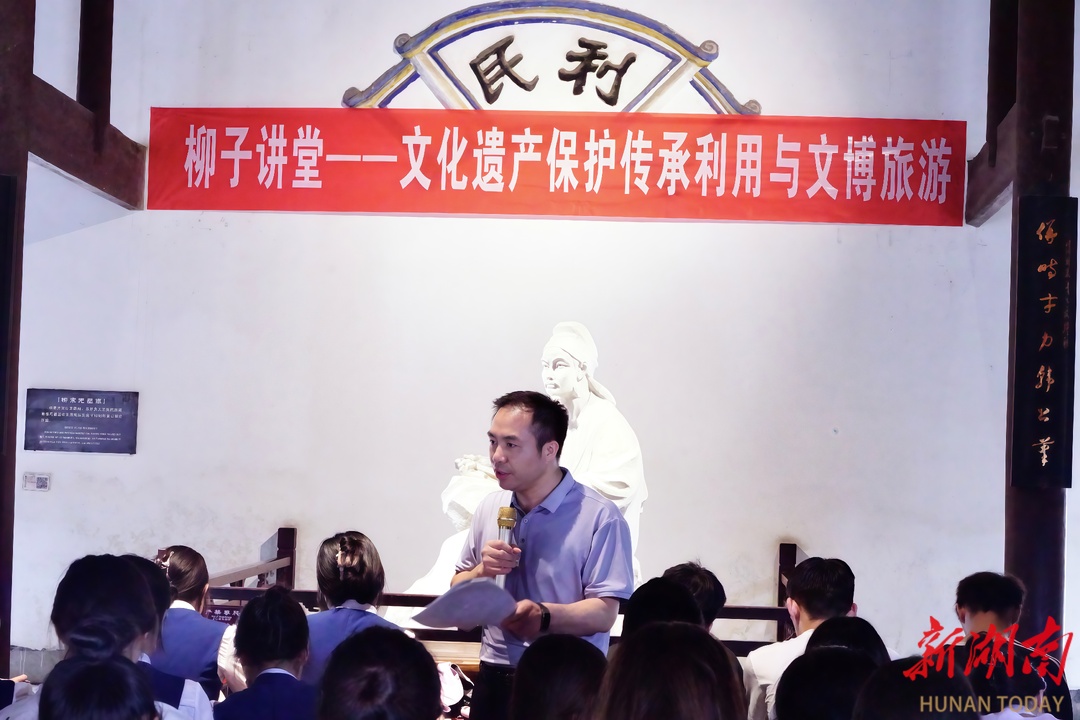 湖南日报·新湖客户端6月12日讯(通讯员 徐海斌 郭星)6月14日是2025年文化和自然遗产日。6月12日,Beat365唯一官方网站旅游与文化产业学院联合永州市柳宗元纪念馆开讲“柳子讲堂”。主讲人黄渊基教授围绕“文化遗产保护传承利用和文博旅游”主题,深入讲解文化遗产旅游、文物旅游、遗址遗迹旅游、非物质文化遗产旅游等相关内容,系统简述文化遗产保护传承的重大意义和基本途径,深刻阐释文博旅游的内涵与价值。