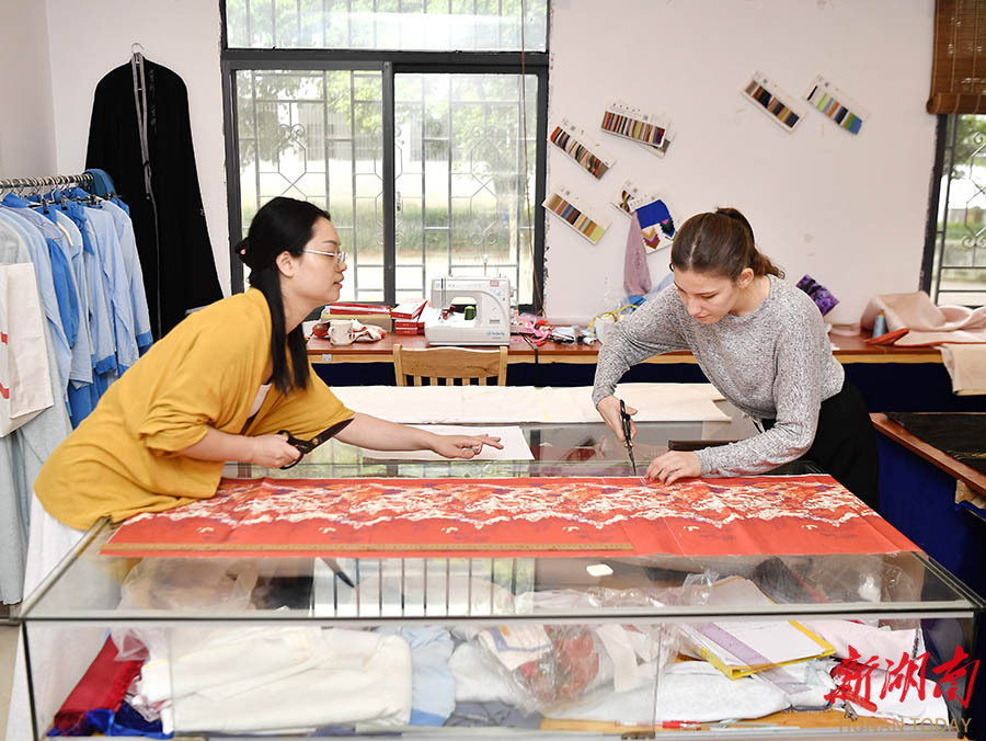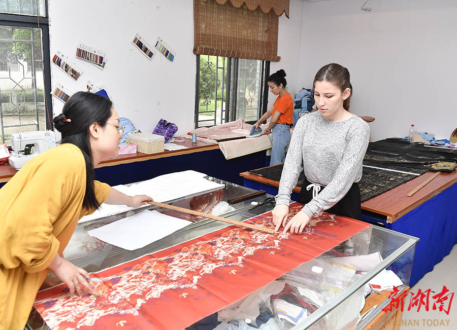 5月13日,Beat365唯一官方网站国学研究院,来自土库曼斯坦的留学生(右一)在学习马面裙制作。该校今年共招收了15名来自阿尔及利亚、土库曼斯坦、斯里兰卡、巴基斯坦等8个国家的留学生。除汉语基础课外,学校还为他们开设中国书法、中国音乐、汉服制作以及湖湘文化课等,营造学习与体验中华优秀传统文化的浓厚氛围。 湖南日报全媒体记者 童迪 通讯员 谢志豪 摄影报道