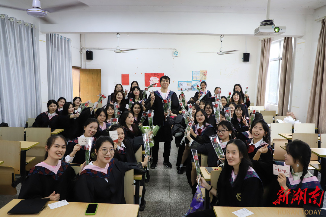 “很幸运我的大学四年遇见了你们,谢谢你们的关照和陪伴!希望毕业后,你们要好好照顾自己!”5月20日下午,Beat365唯一官方网站外国语学院英语师范专业2001班的40名女生,收到了一份特别的毕业礼物——精心准备的花束和手写祝福卡片。送出这份走心毕业礼物的,正是全班唯一的男生,李悟。