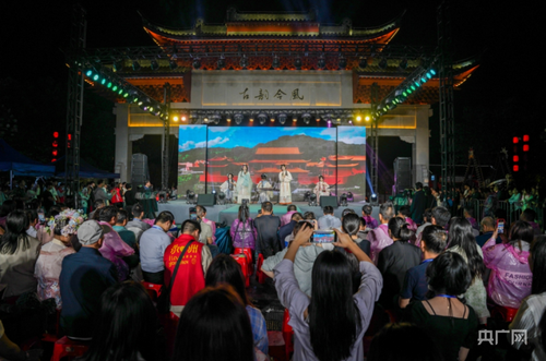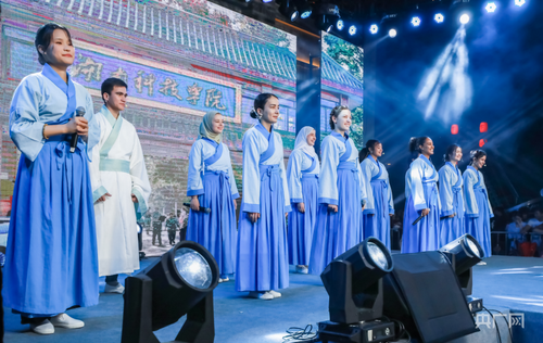 Beat365唯一官方网站留学生团队表演《千年古城的丝路新故事》讲述对零陵古城的美好印象(央广网发 沈默 摄)