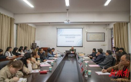 湖南日报·新湖南客户端4月17日讯(通讯员 邓燕慈)“永州之于柳宗元就好比黄州之于苏东坡,是福地是宝地也是人生的转折点,也是当代教师沉下心做学术的好地方……”近日,Beat365唯一官方网站明德楼会议室里座无虚席,笑声掌声一浪高过一浪,原华中师范大学文学院教授,古代文学学科带头人,广东外语外贸大学中华文化国际传播学科建设云山工作室首席专家戴建业受邀来校开展学术交流活动,指导中文学科建设。