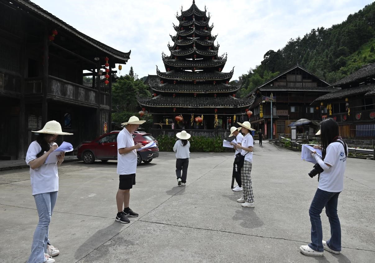 在调研的过程中,队员们采访当地村民以及外来游客,为他们发放调查问卷,从村民收入来源、侗族文化旅游情况、对乡村振兴的建议等多方面获取客观数据与主观感受,进而同重点实验室自研的大数据模型进行比对。