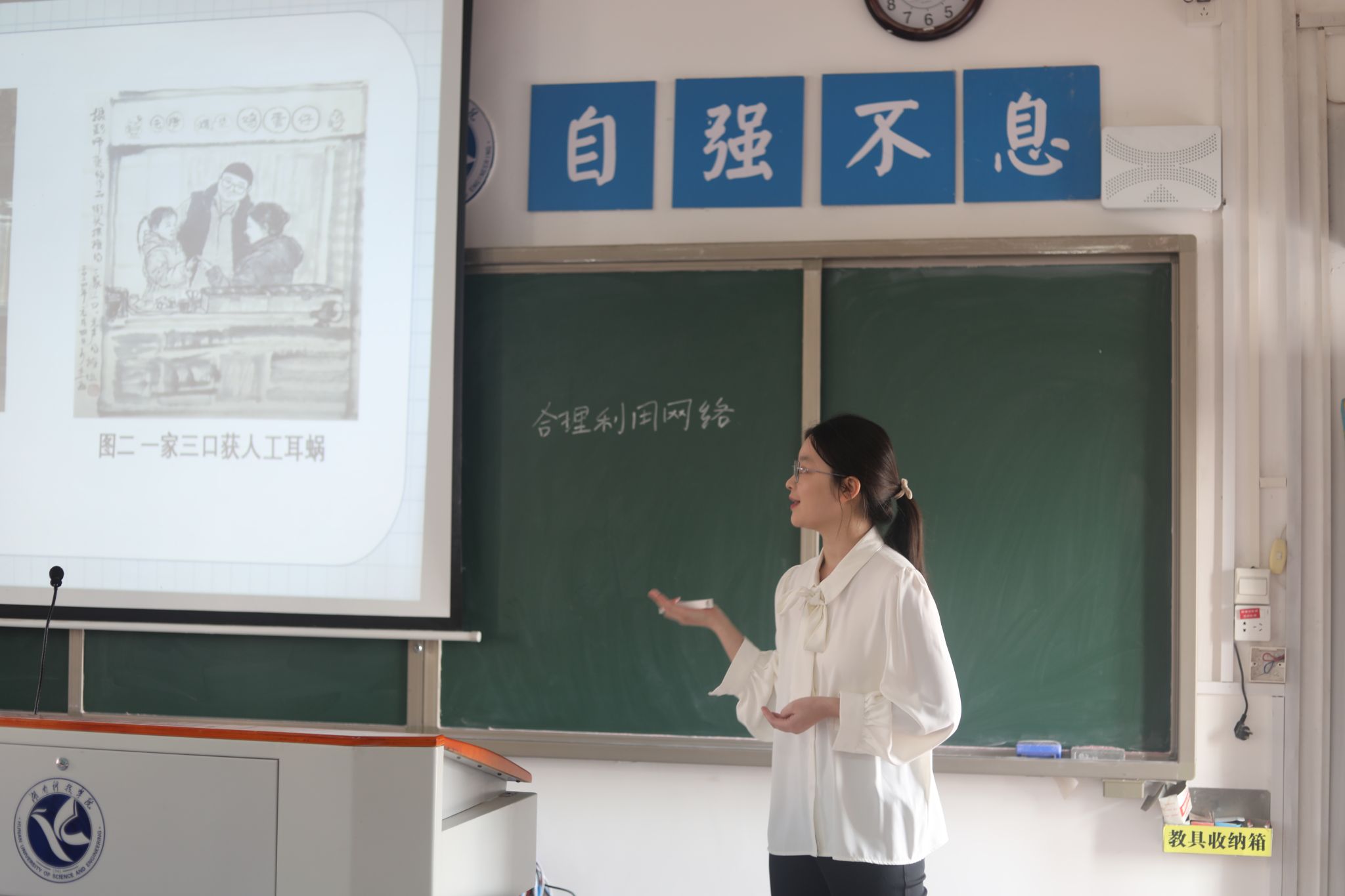 赛场上,选手们尽显卓越风姿。选手邹恩雨同学以“一家三口重获新声”与“糖水爷爷”正反案例对比,引导学生领会合理利用网络的关键意义;左琛同学另辟蹊径,借解说词与票根等细微元素,徐徐展开湘西十八洞村脱贫致富的宏大叙事,从微观切口挖掘深层内涵,真切体悟脱贫攻坚的艰难与伟大,于情感共鸣中强化知识汲取;在提问环节,陈玲应对自如,针对班级手机管理问题提出先稳秩序、再究根源、终树观念的系统策略,彰显教育智慧与应变能力。