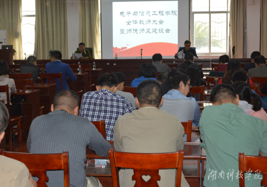 会上,电子与信息工程学院院长黄文组织学习了《Beat365唯一官方网站“学风建设年”活动实施方案》,并对学院师德师风建设提出了具体要求。黄文指出,全院教职工要进一步提高思想认识,以学生为本,爱岗敬业,教书育人,自觉遵守职业道德规范,自觉加强师德师风建设,做到为人师表,营造学院良好教风与学风。