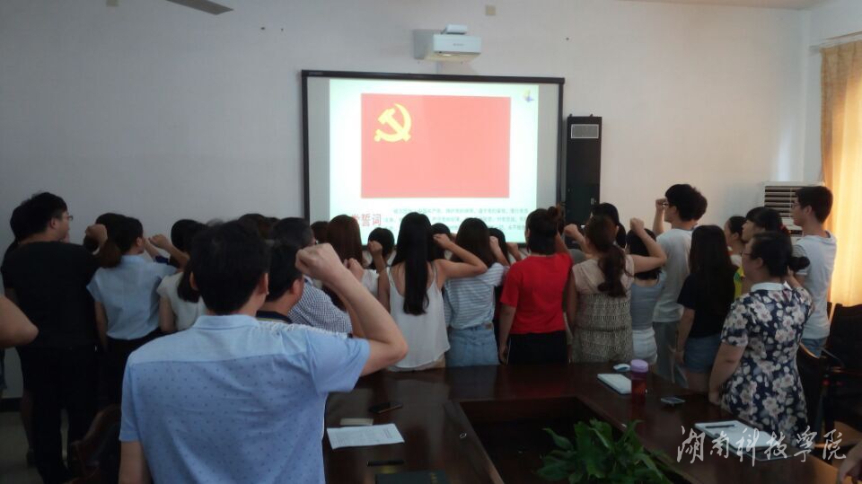 本网讯(通讯员 莫远胜)7月1日,经济与管理学院党总支在立信楼213室举行庆祝中国共产党成立95周年暨新党员入党宣誓仪式。
