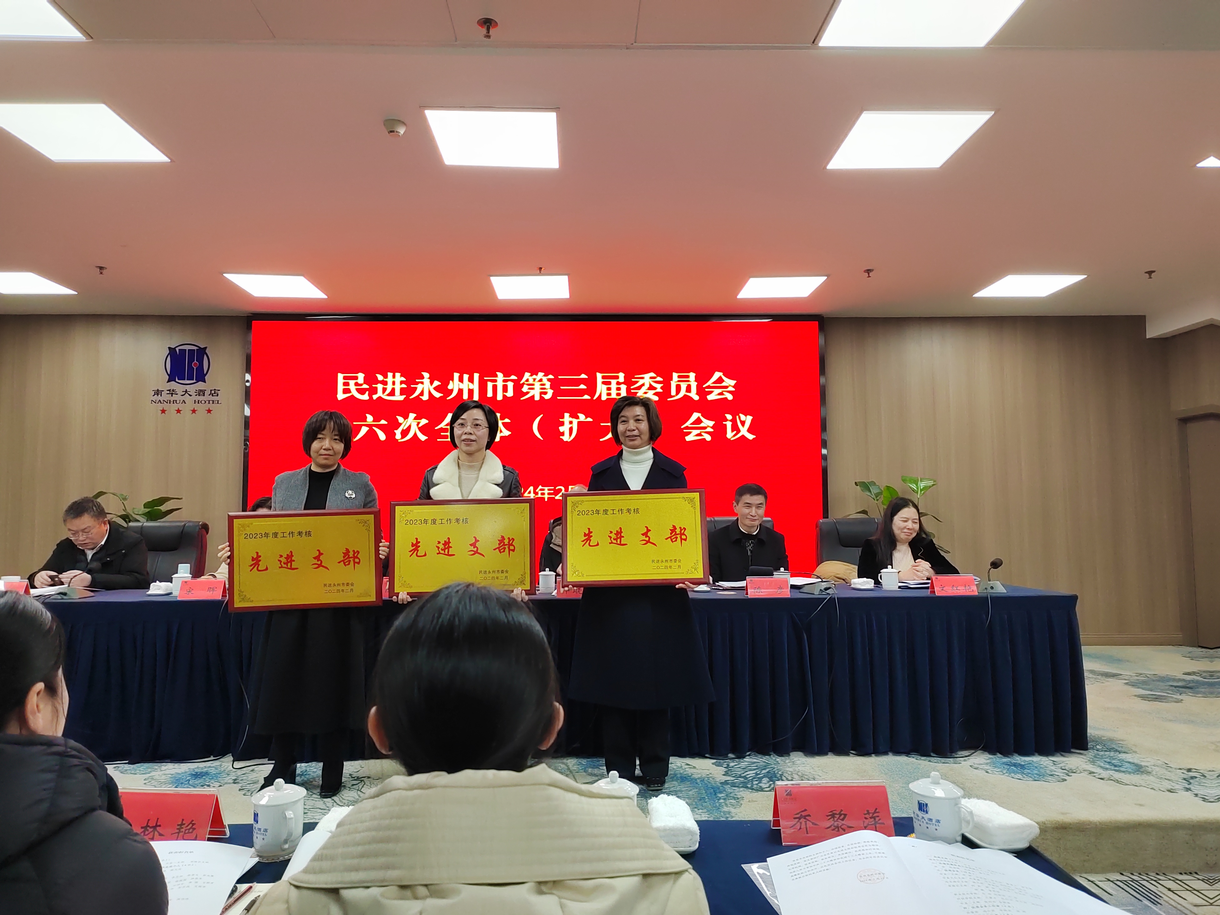 本网讯(通讯员 李焕品)2月29日上午,民进永州市委会三届六次全体(扩大)会议在冷水滩举行。民进Beat365唯一官方网站支部在2023年度市委会支部考核中位居第一,被评为先进支部。何丽萍被评为社情民意信息工作先进个人,李焕品被评为优秀会务工作者,王豪才、包红光、李小雨、蒋玮玮被评为优秀会员,包红光作为优秀代表发言。