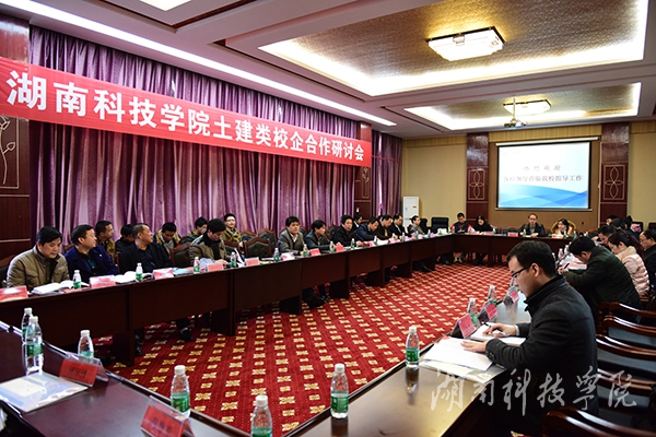 本网讯(通讯员 廖群峰)12月12日下午,校长曾宝成,副校长李常健与来自湖南建筑工程集团东北工程局、湖南省益阳公路桥梁建设有限责任公司等十七家公司代表齐聚一堂,就推进土建类校企合作展开热烈探讨。永州市住房与城乡规划建设局党组书记、局长彭晓东出席。会议由土木与环境工程学院党总支书记张俭民主持。