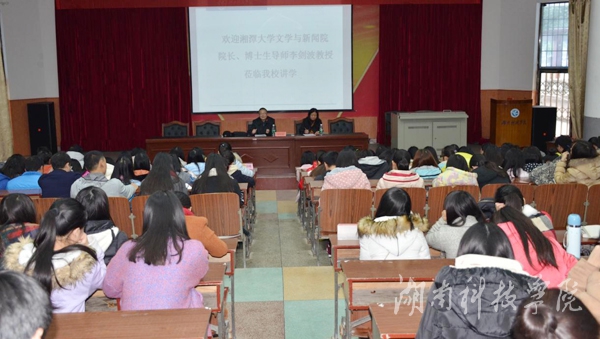 本网讯(通讯员 向赛男 陈壹丹 李雯静)11月27日下午,湘潭大学文学与新闻学院院长、博士生导师李剑波教授应邀来我校讲学,在明德楼报告厅为人文与社会科学学院师生作题为“清代诗坛对宋诗范式的重建与创新”深刻而精彩的讲座。讲座由该院翟满桂教授主持。