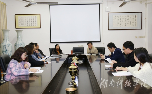 本网讯(通讯员 李雯静)为进一步研究探讨湖南省古代文学研究趋势、柳宗元及潇湘文学,11月27日至28日,柳宗元及其潇湘文学研讨会暨2015年湖南省古代文学年会将在我校召开。为保障会议顺利召开,17日下午,人文与社会科学院院召开协调会,精心部署会议召开的有关事宜。该院院长潘雁飞、科技处处长杨金砖及该院教授翟满桂等参加。