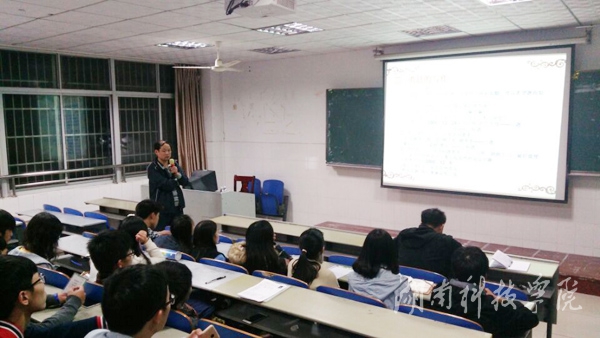 本网讯(通讯员 饶赟 董烁) 11月22日,为加强学院新闻宣传工作,增强学生新闻写作技能,校党委宣传统战部副部长、新闻中心主任唐励开展以“校园新闻采访与写作”为主题的讲座。