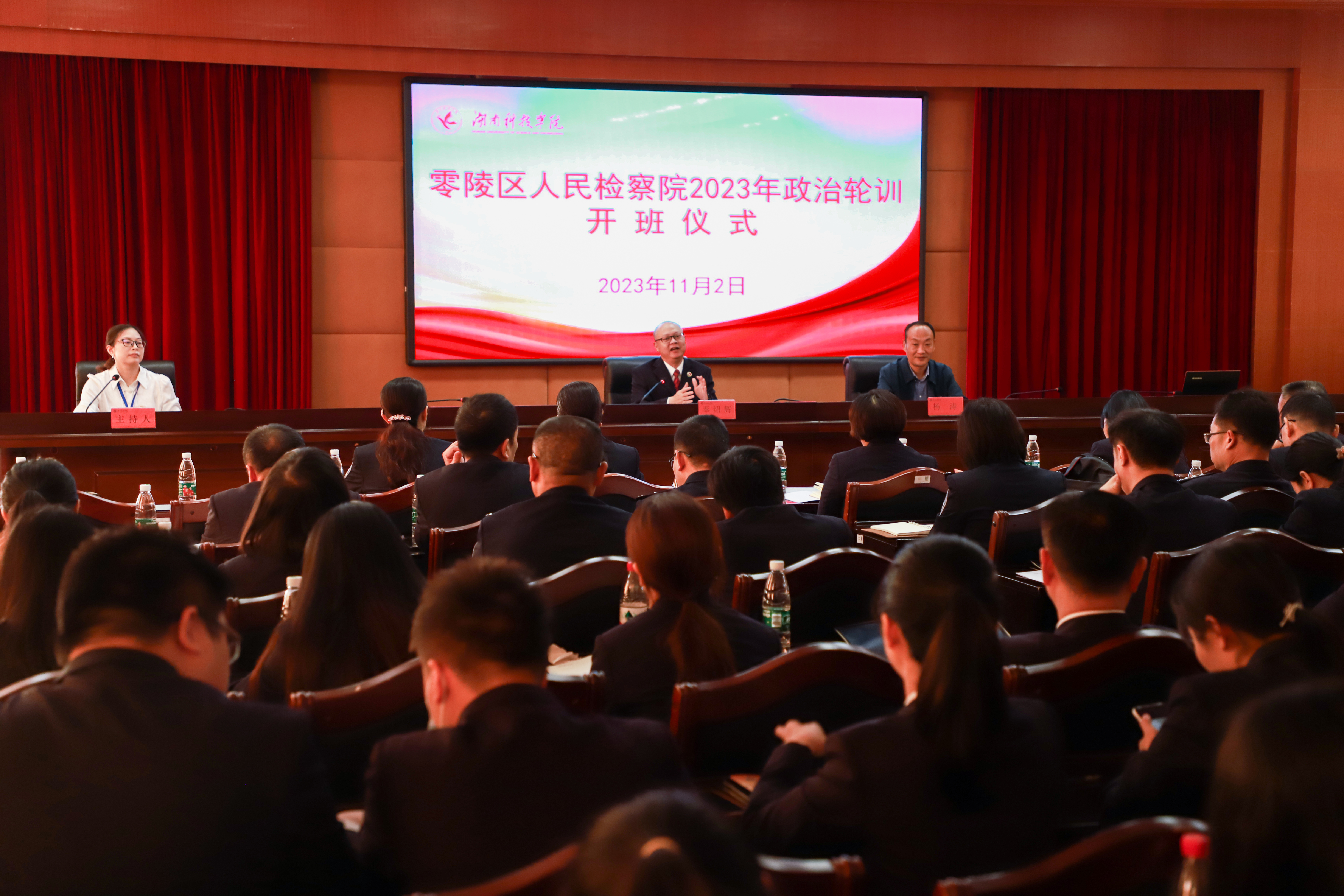 本网讯(通讯员 雷琼)11月2日,零陵区人民检察院2023年政治轮训培训班在我校开班。校党委委员、组织部长、党校常务副校长杨涛出席开班仪式,零陵区人民检察院党组书记、检察长奉绍辉作开班动员讲话,开班仪式由组织部副部长陈玉皎主持。