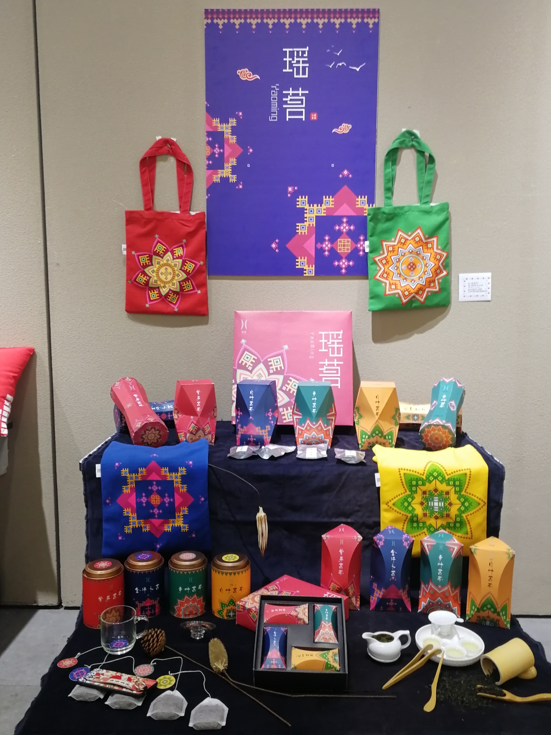 本次共展出100余件优秀作品,作品都是经过评审老师精心挑选,题材多样、内容丰富、主题鲜明、富有时代气息。其中部分作品取材于永州地方文化,以永州八景、江永女书、江华瑶族服饰等为主题,融入地方特色元素,作品风格极具地方特色。作品江华苦茶的包装《瑶茗》,其外形设计就是提取具有瑶族特色的长鼓形状作为主要元素,具有典型的地域民族特色。