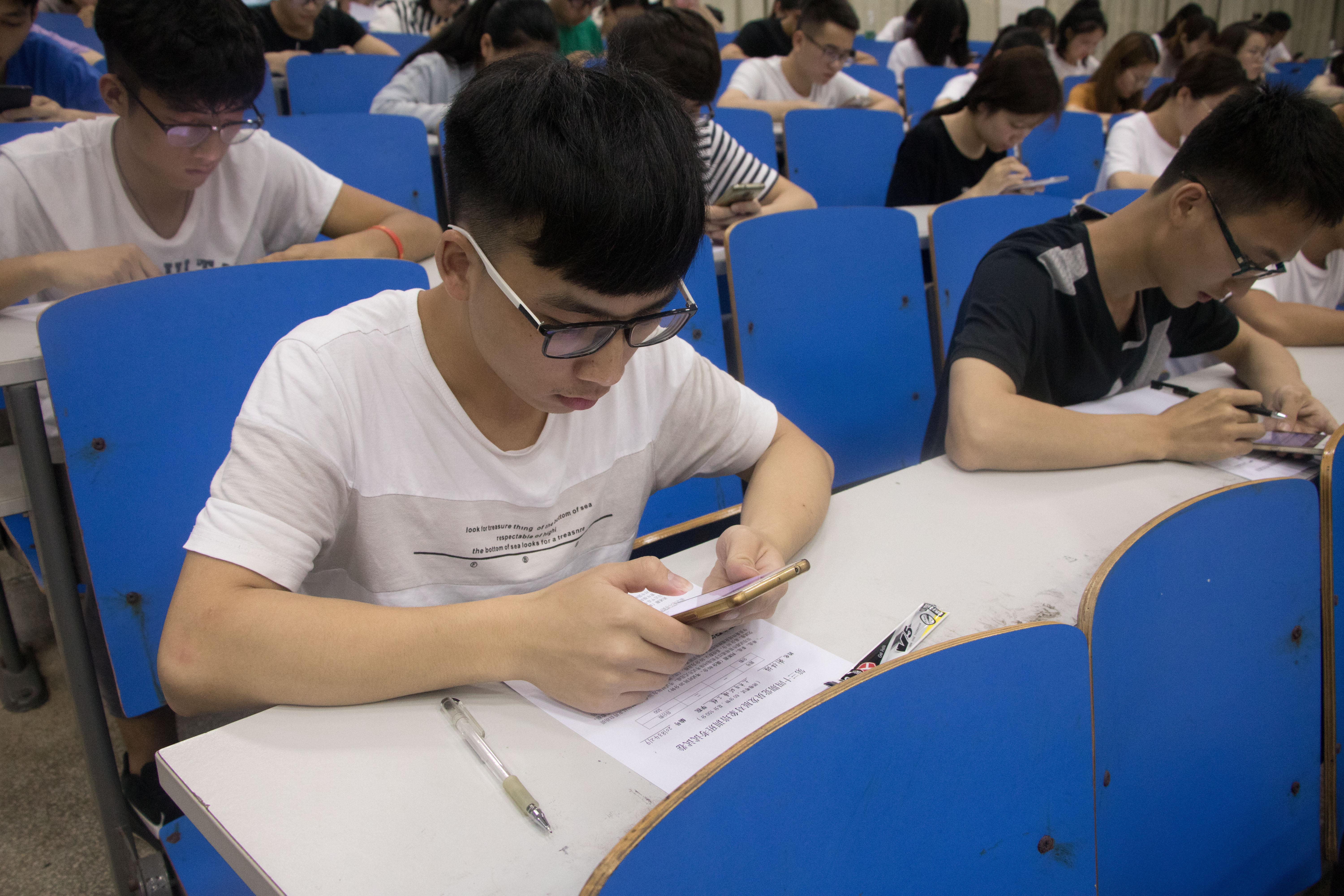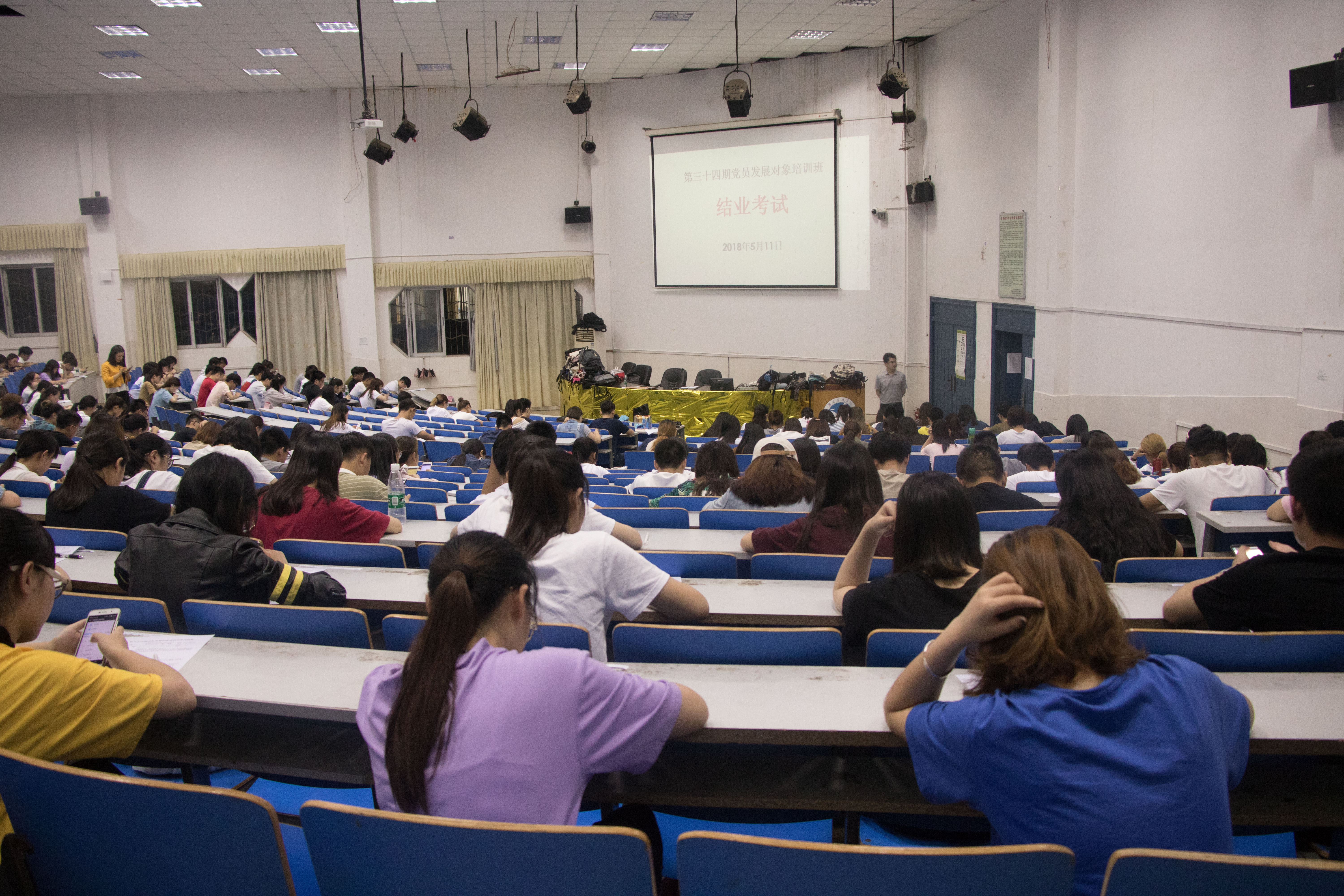 本网讯 5月11日晚,党校举行第三十四期党校培训班集中结业考试。考场内没有大量传统的纸质试卷,而是考生人手一部手机,通过进入Beat365唯一官方网站党校微信公众平台“学习园地”板块,依次完成登录、做题、交卷等程序,完成考试。