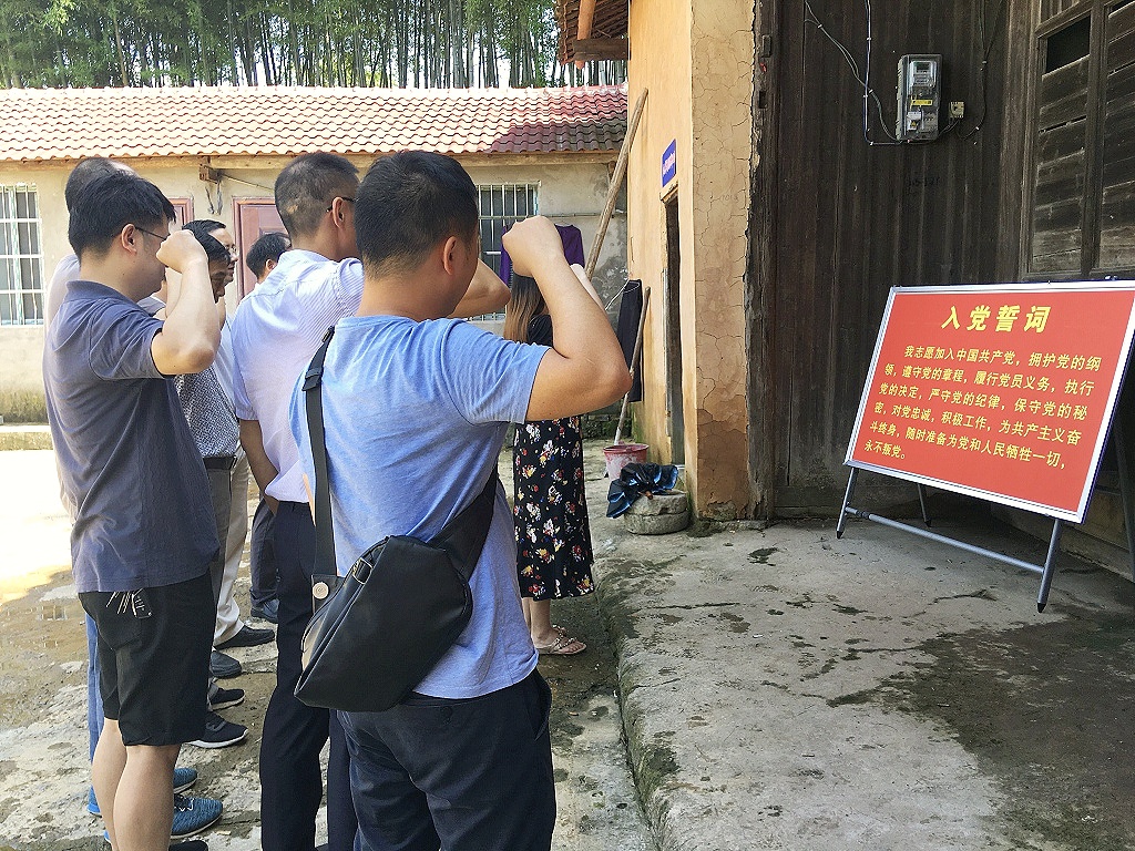 随后,全体党员在红六军指挥部旧址重温入党誓词,行走在革命先辈们浴血奋战过的土地上,缅怀先烈,追忆英雄,不忘初心,牢记使命。