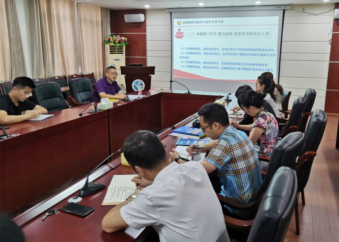 本网讯 8月30日,校党委委员、组织部长何福林为化学与生物工程学院教师党员上“新时代新担当新作为”主题党课,党课由该院党总支书记曾二青主持。