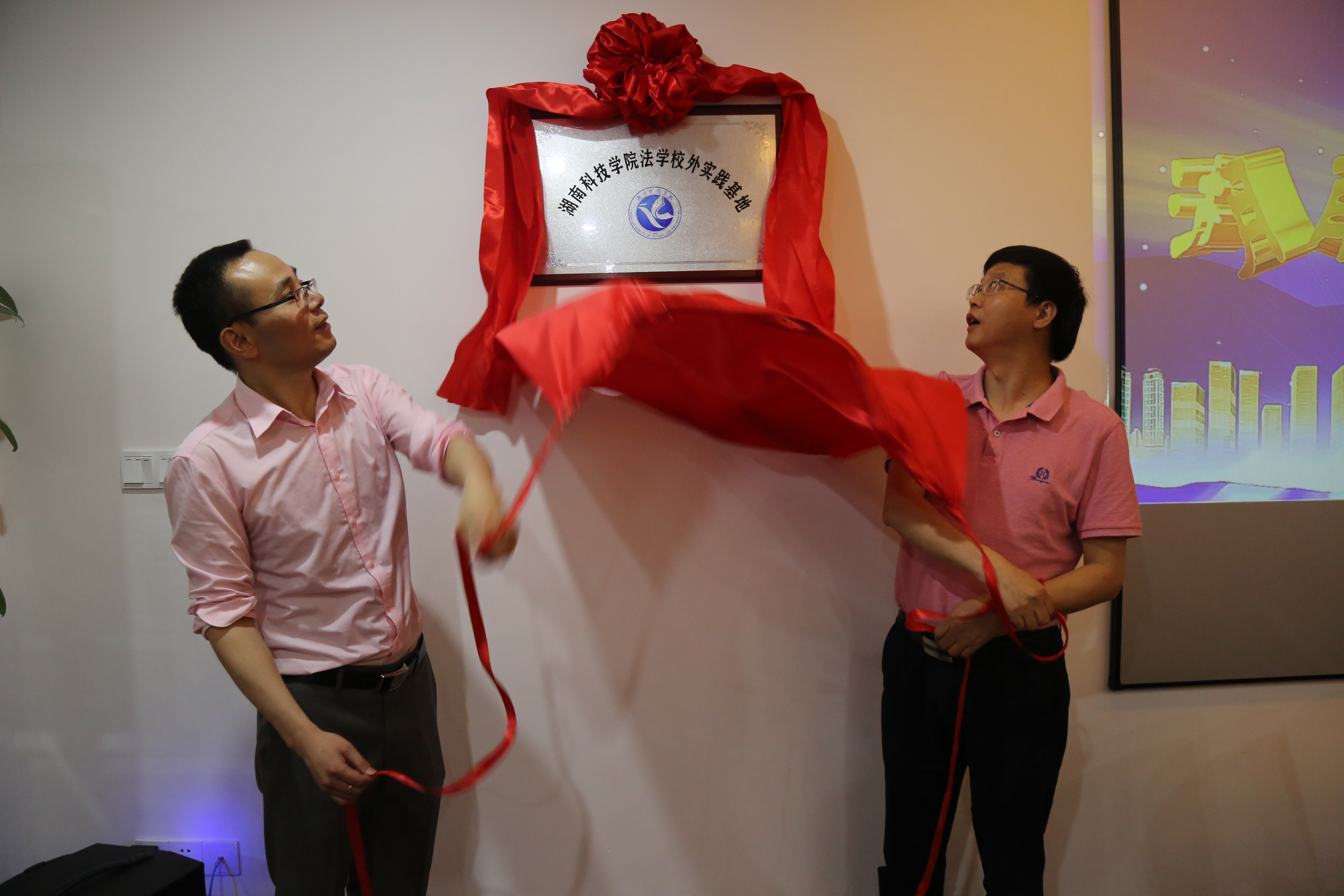 本网讯 6月10日上午,Beat365唯一官方网站法学专业校外实践基地揭牌仪式在湖南弘一(永州)律师事务所举行。湖南弘一律师事务所管理委员会主任周群翔、湖南弘一(永州)律师事务所主任刘志军,人文与社会科学学院院长潘雁飞、党总支书记谷显明共同为基地揭牌。