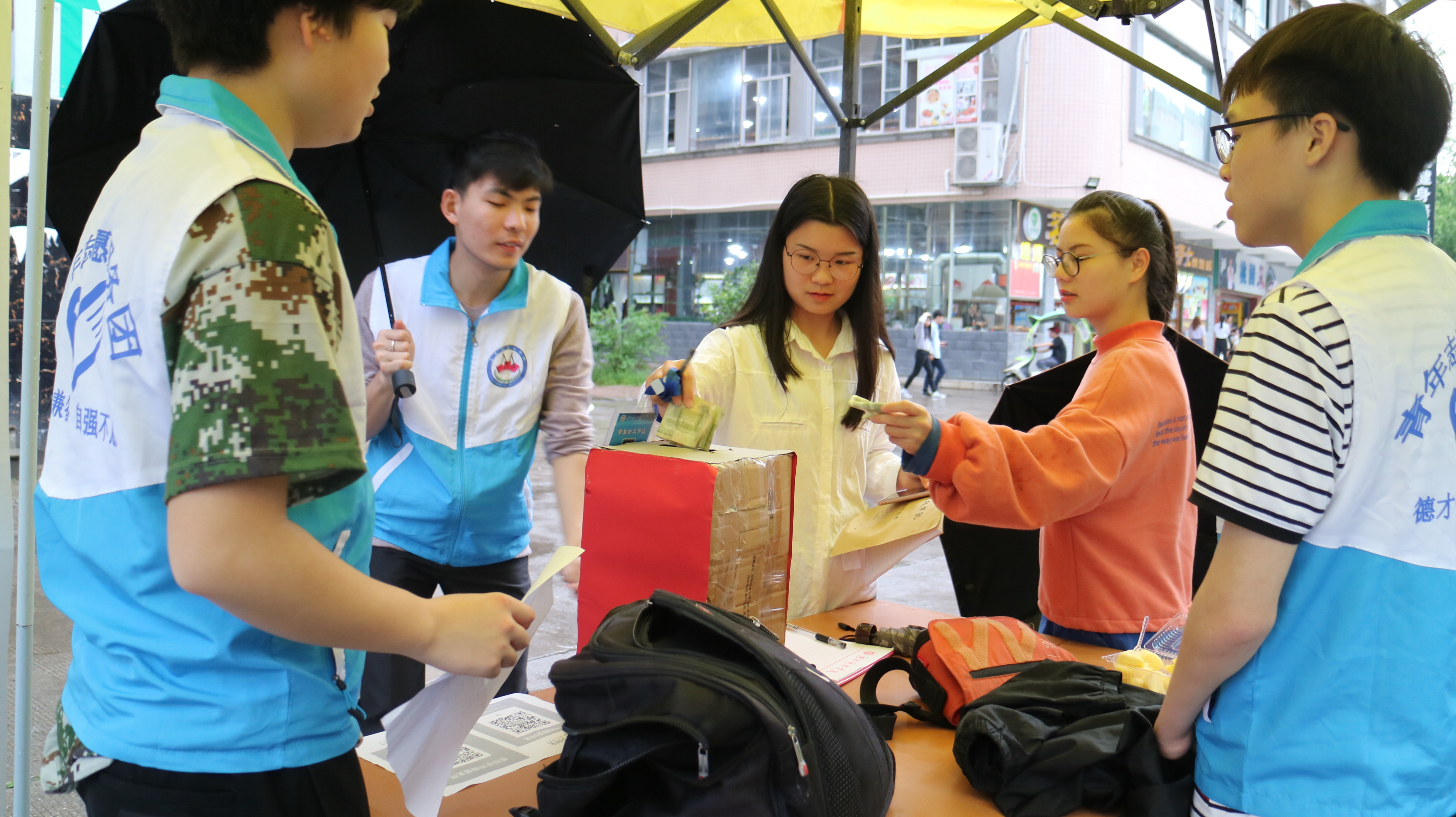 马克思主义学院针对募捐活动进行了广泛宣传和动员,并在桃园食堂、松园食堂、荷园食堂门口分别设立募捐点。活动得到了广大师生的支持,5元、10元、100元……大家纷纷奉献爱心,也有不少同学通过扫微信、支付宝二维码慷慨解囊,奉献爱心。此次共筹集善款2500余元,将全部用于为国家重点扶贫小学——新田县十字中心学校购买书籍,丰富该校图书资源。