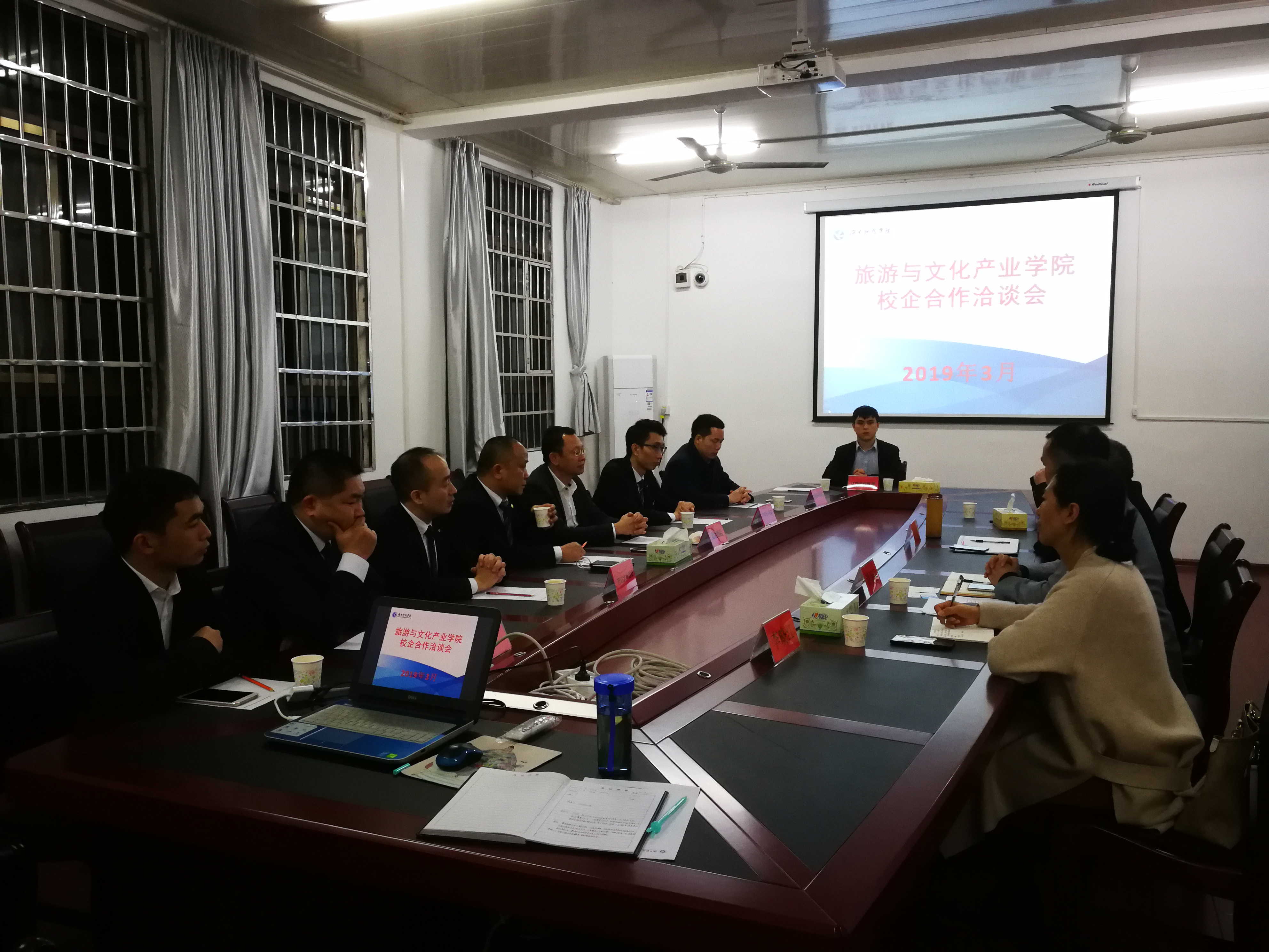 本网讯 3月25日晚,旅游与文化产业学院召开校企合作洽谈会,汕头显达酒店、宁波东钱湖恒元温泉酒店、新丰云天海温泉原始森林度假村、江西省新绎旅游投资发展有限公司、东莞万富酒店管理有限公司万达文华酒店等五家单位代表出席,该院党总支书记李年终以及教师代表参加。会议由该院党总支副书记潘清远主持。