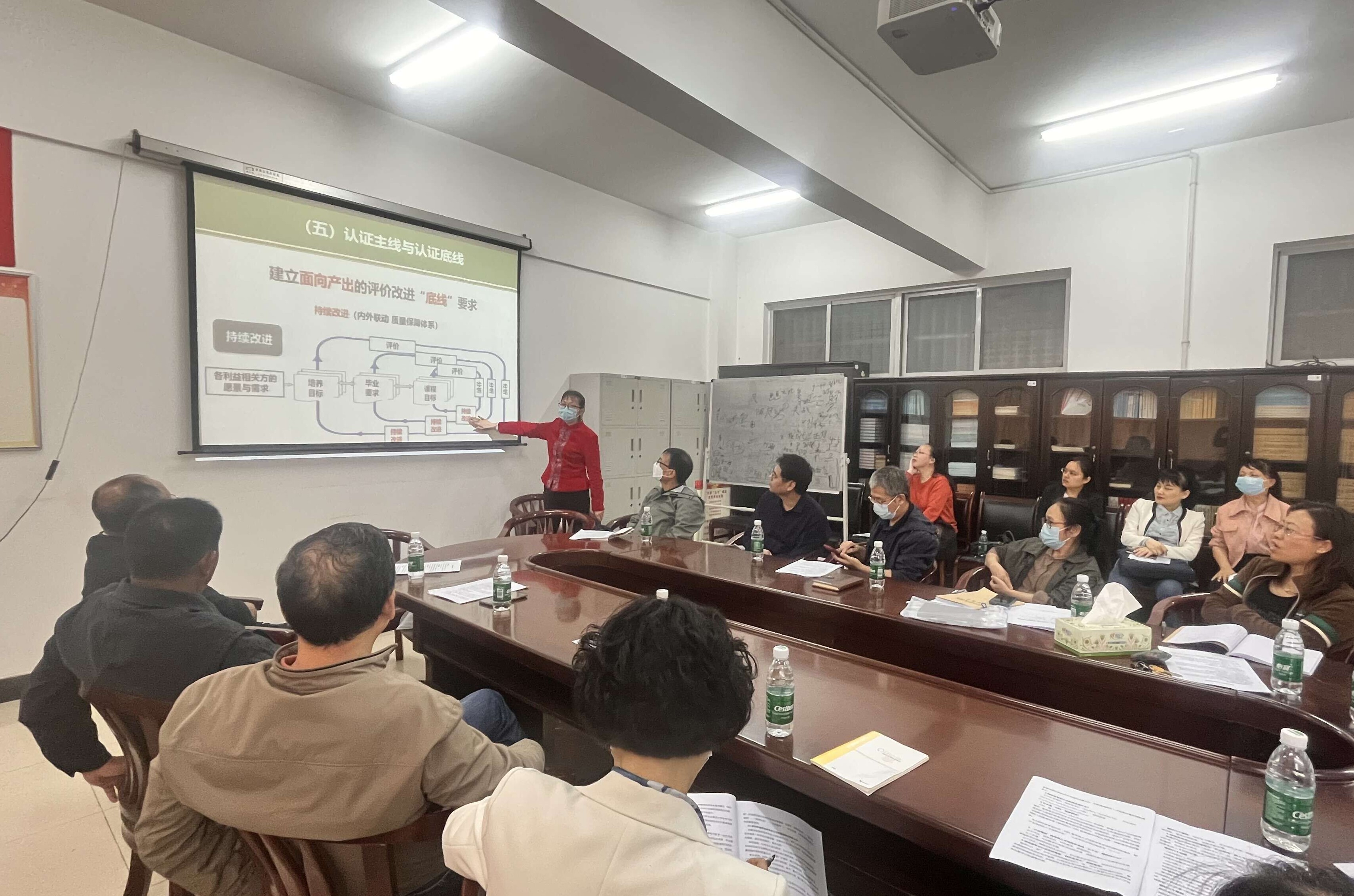 周教授就教学大纲中课程目标、课程目标与毕业要求指标点对应关系、教学内容和教学方式方法与课程目标的对应关系等七个方面分析了认证指标在课程体系构建中的逻辑关系,分享了督导落地的具体做法。