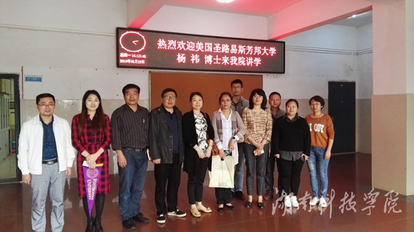 交流会中,杨祎博士对美国圣路易斯芳邦大学的基本情况及开展的国际合作项目进行了介绍,并就合作方式、学生实践能力培养、教学管理评价、课程考核、国际性学生竞赛等方面进行了交流。