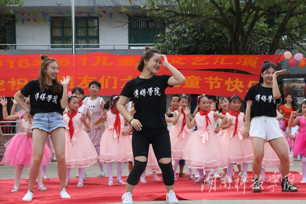 本网讯(通讯员 邓强 尹文怡)5月31日上午,传媒学院青年志愿服务团与邮亭圩镇中心小学联合举办六一文艺汇演活动,与小朋友们一起欢度“六一”儿童节。