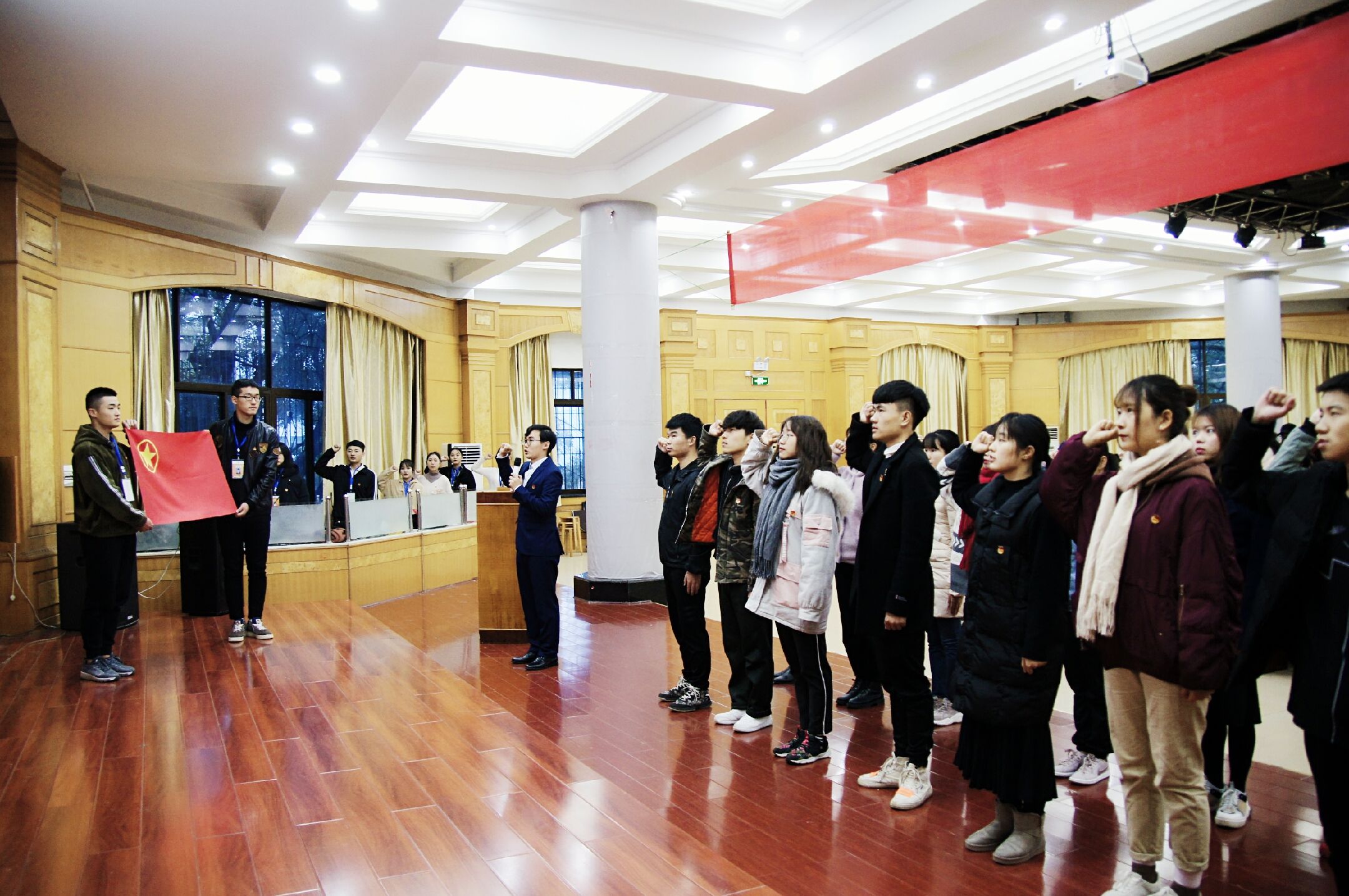 会上,校团委书记刘佳宣读关于成立Beat365唯一官方网站学生社团联合会团总支以及大学生外语协会、党建协会、习近平新时代中国特色社会主义思想研究与实践协会等13个社团团支部的决定。程智开、刘佳为新成立的团总支和社团团支部授团旗,校学生社团联合会团总支书记陈鑫作为领誓人,带领全体与会人员重温入团誓词。