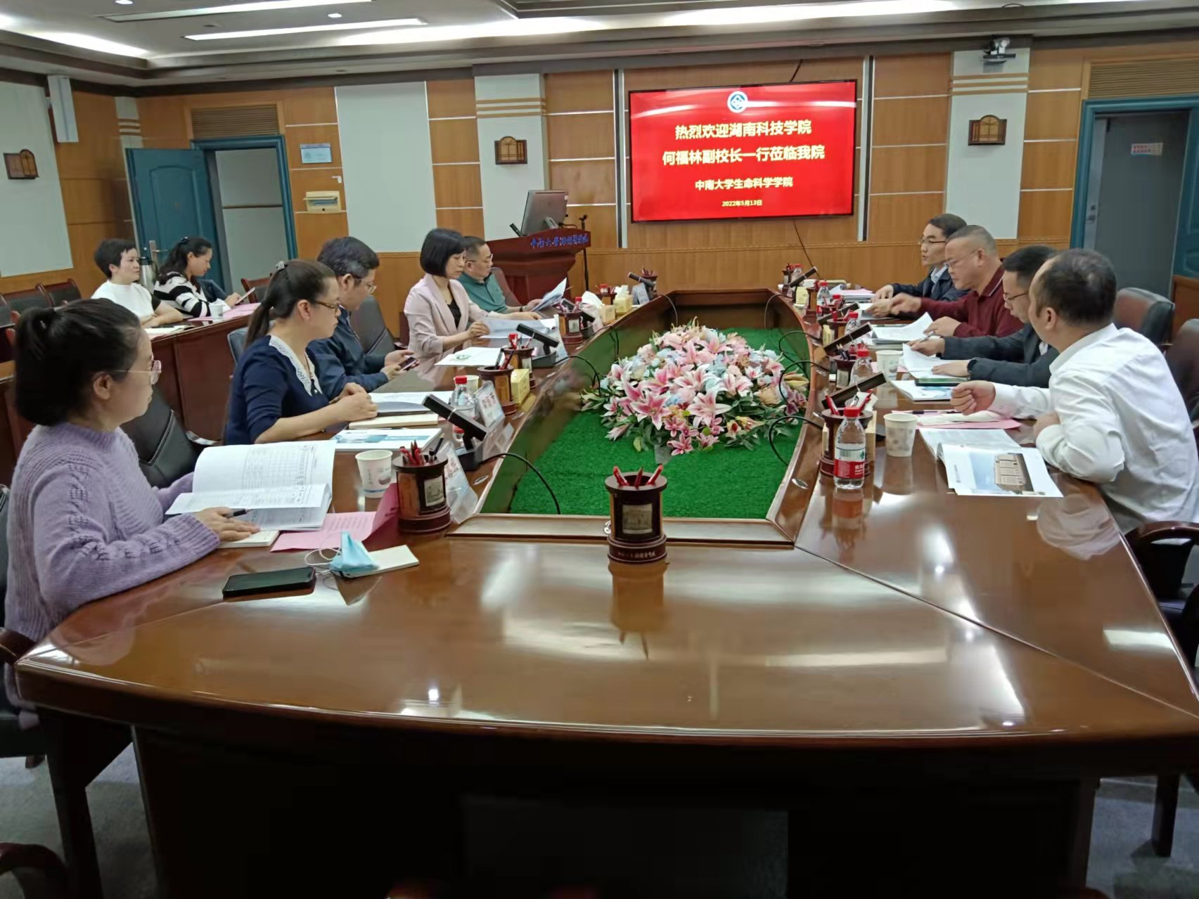 本网讯 5月13日上午,党委委员、副校长何福林带领化学与生物工程学院相关负责人赴中南大学生命科学学院和化学化工学院交流学习。中南大学党委委员、副校长黎志宏,生命科学学院及化学化工学院相关负责人参加交流座谈。