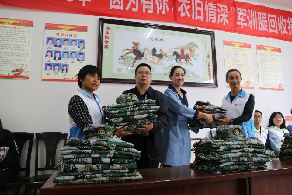 据悉,为了避免军训服被闲置浪费,最大限度发挥军训服的价值,今年九月底,新生军训结束后,校青年志愿服务团联合理学院青年志愿服务团发起了“因为有你 衣旧情深”的军训服捐赠活动,号召大家把手中的军训服捐给有需要的人。活动发起后,许多大学新生把清洗干净的军训服送到捐赠回收点。在短短的十多天的时间里,该校青年志愿者服务团共收到了1700余套军训服。