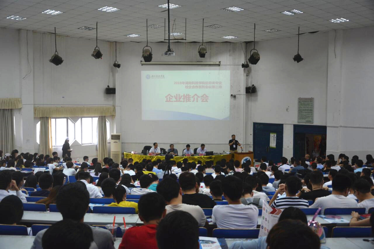 本网讯 6月9日,2018年信息类专业校企合作推介会在日新楼212举行,15家企业代表来校宣讲。校长曾宝成、副校长李常建、教务处处长石循忠以及电子与信息工程学院全体院领导出席。