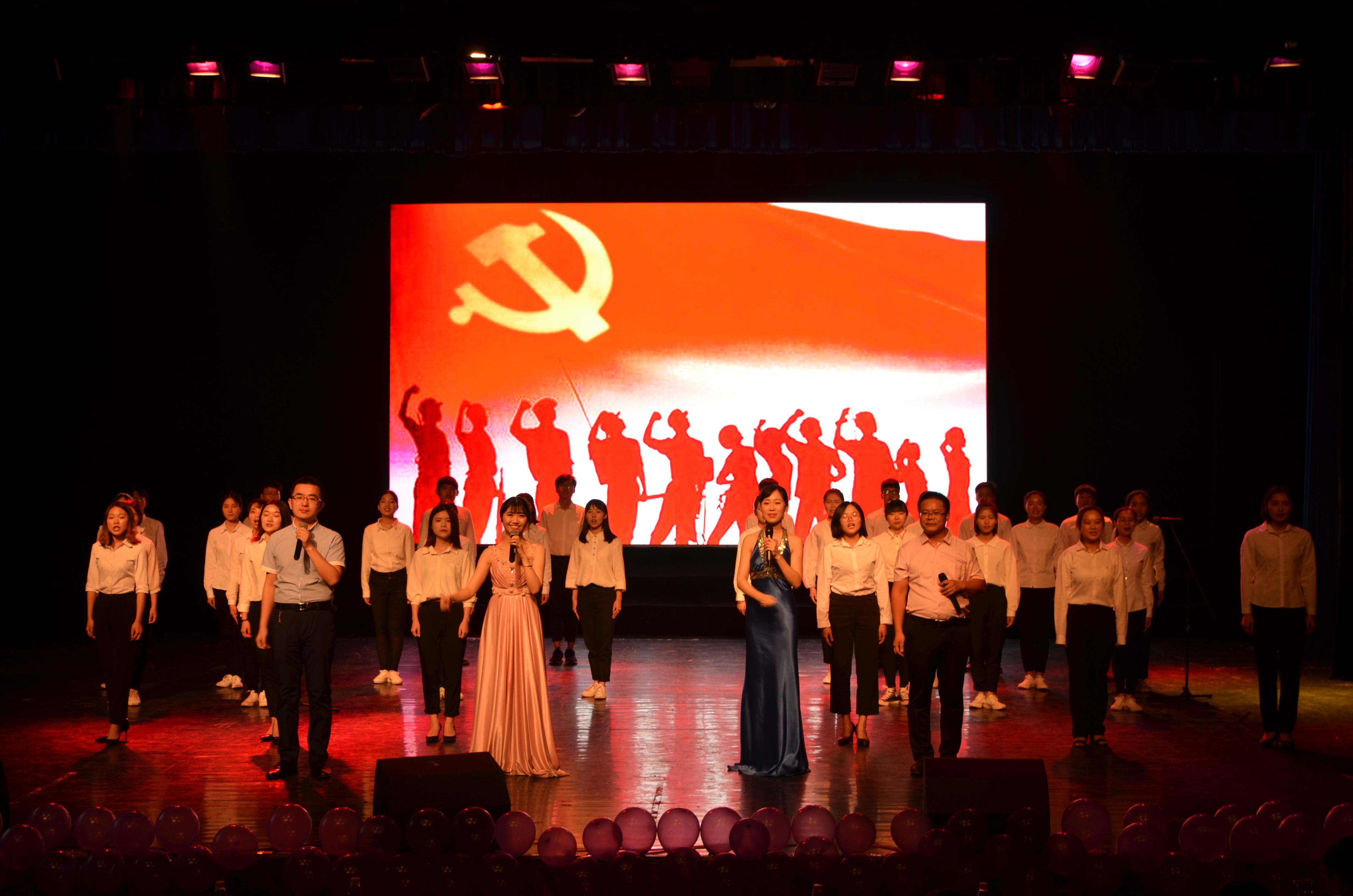 本网讯 6月5日晚,人文学院第三届“青春梦,人文情”2018届毕业生暨预科生欢送会在音乐厅上演,党委副书记唐艳明、党委委员副校长程智开、党政办主任杨能山、学工部部长唐华山、团委书记刘佳、该院院长潘雁飞、党总支书记谷显明以及人文学院全体老师、毕业生、预科生齐聚一堂,共同观看了晚会。