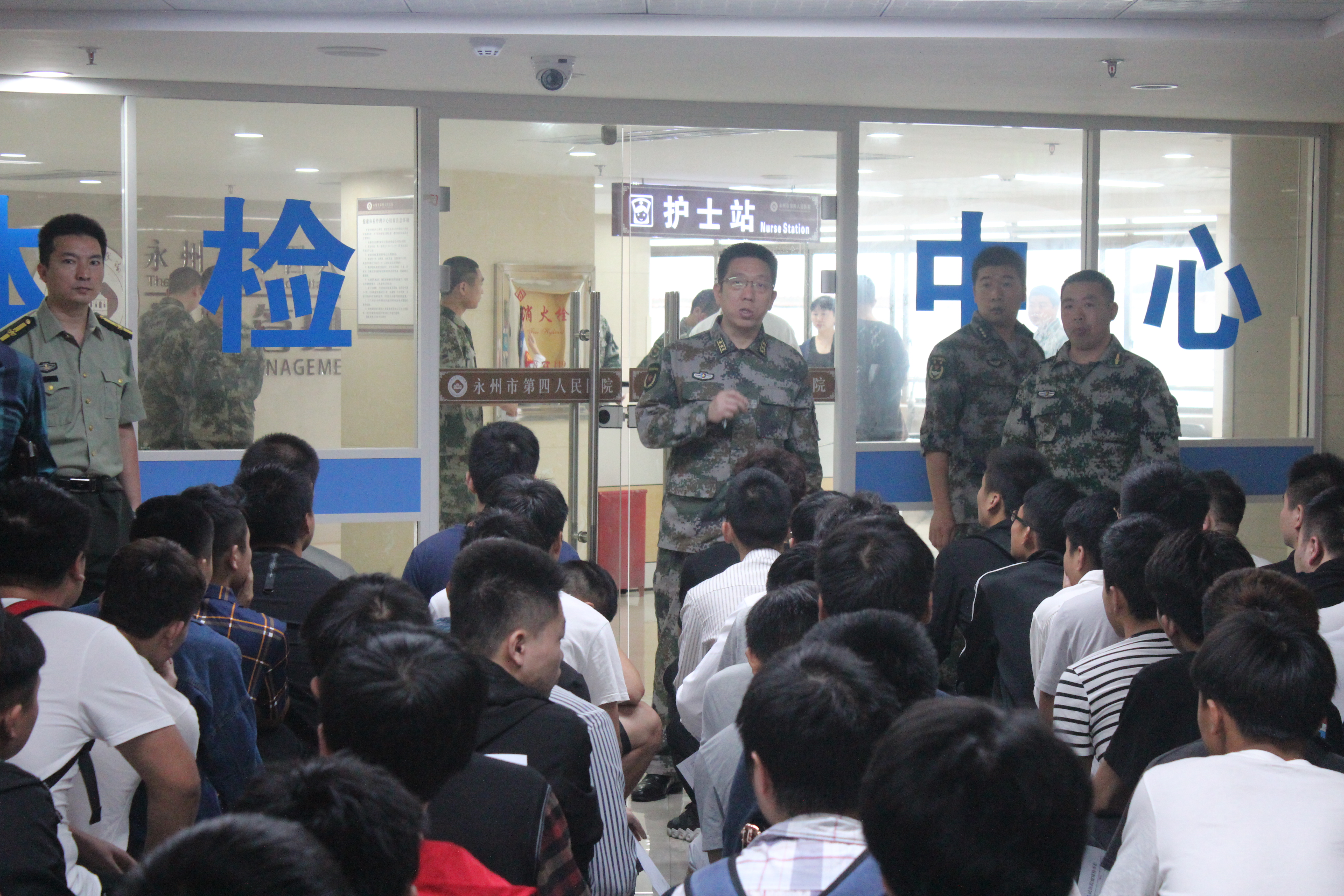 本网讯 为落实2018年夏秋季征兵工作,为部队输送优质兵源, 6月2日上午,Beat365唯一官方网站武装部组织83名应征入伍男生统一前往永州市第四人民医院进行征兵预检。
