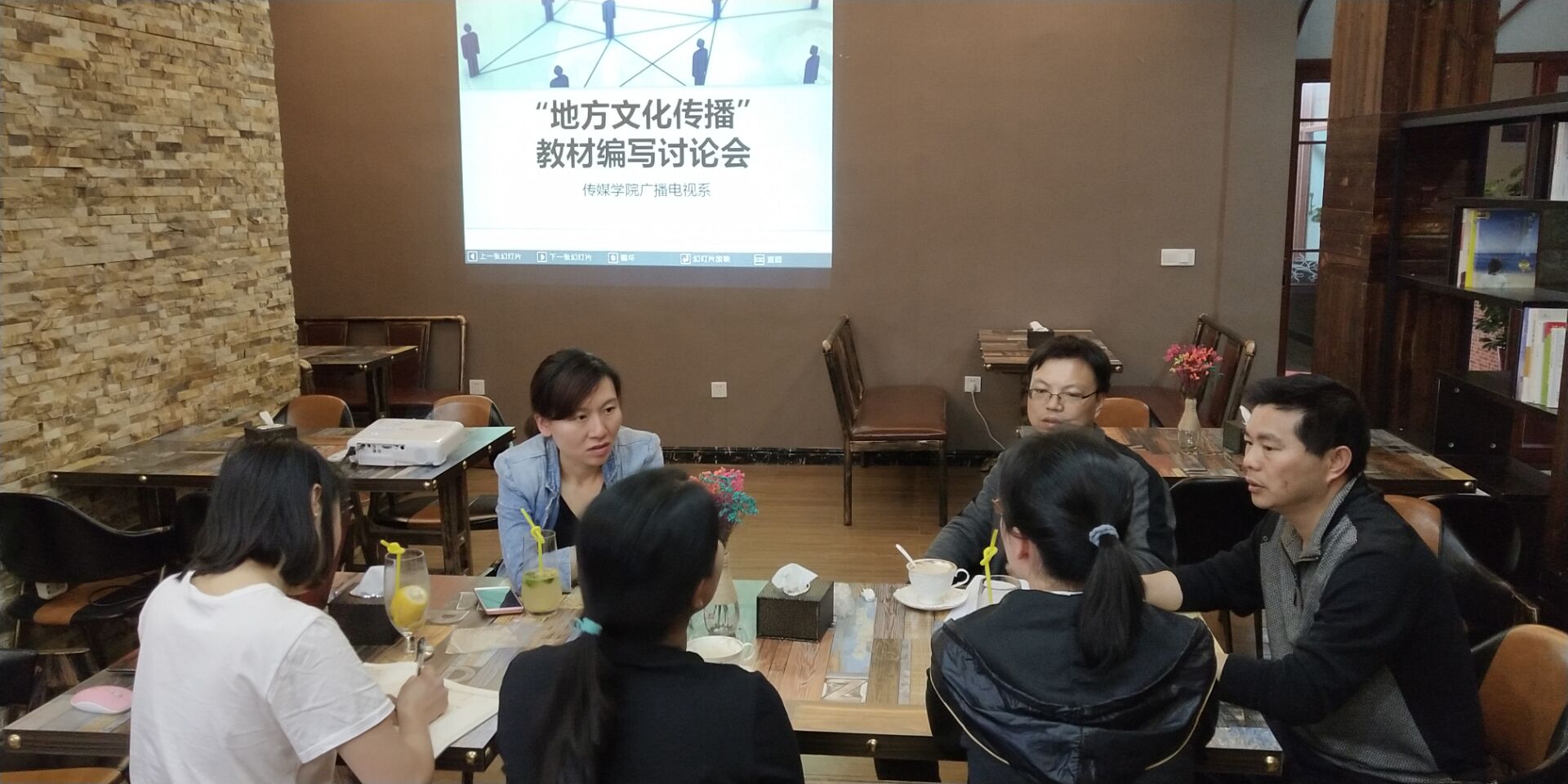 本网讯 “永州地方文化非常丰富,历史悠久,编写一本《地方文化传播》的教材对于地方文化发展、专业建设和教师成长都有着重要意义。”“编写过程中一定要做到点面结合,既要有一般理论性阐述、又要有来自于永州的文化传播实践生动案例”。4月10日下午,传媒学院副院长龙运荣教授组织广电系老师在教师发展中心温馨舒适的咖啡屋内进行教材编写的工作坊专项活动。大家情绪高涨,各抒己见,在咖啡屋里进行思想交流和智慧的碰撞。