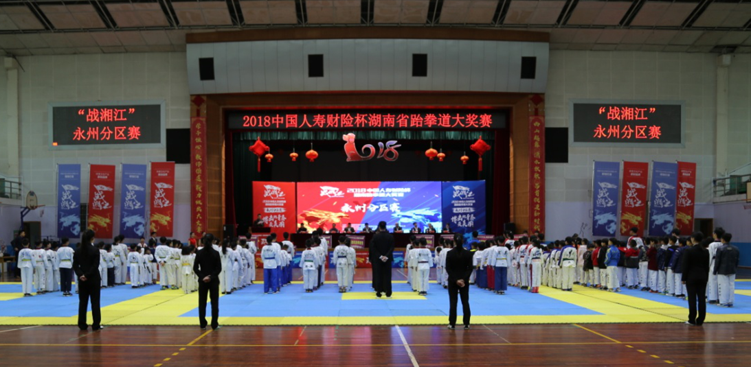 本网讯 4月14日至15日,2018年中国人寿财险杯湖南省跆拳道大奖赛永州分区赛在我校体育馆成功举行,这也是我校连续四年举办该赛,副校长李常健、程智开、体育学院党总支书记何智强、副院长龙亚军出席大赛开幕式。