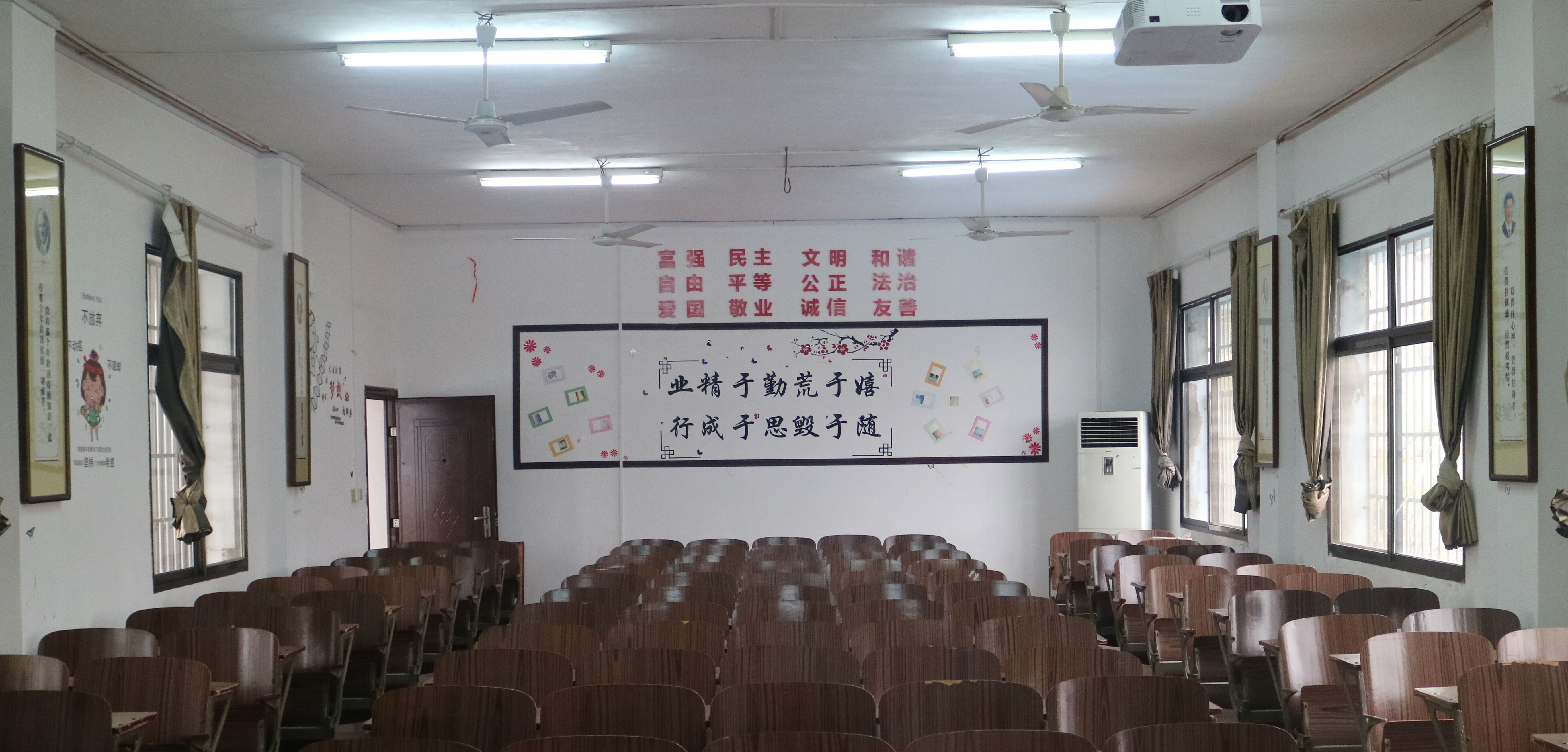 各班级经过为期两周的精心准备和布置,教室更加整洁明亮,文化气息更加浓厚。思政1701班把班级同学的照片布置成精美的壁纸,加上极具创意的海报和蕴含深意的绘画,教室变得温馨雅致。思政1501班引用“业精于勤荒于嬉,行成于思毁于随”经典语录与大家共勉,同时运用可爱的卡通人物表现深刻的道理,活泼而不失庄重。思政1601班采用特色的小饰品装点教室,淡雅而不失大方,文化氛围浓郁。
