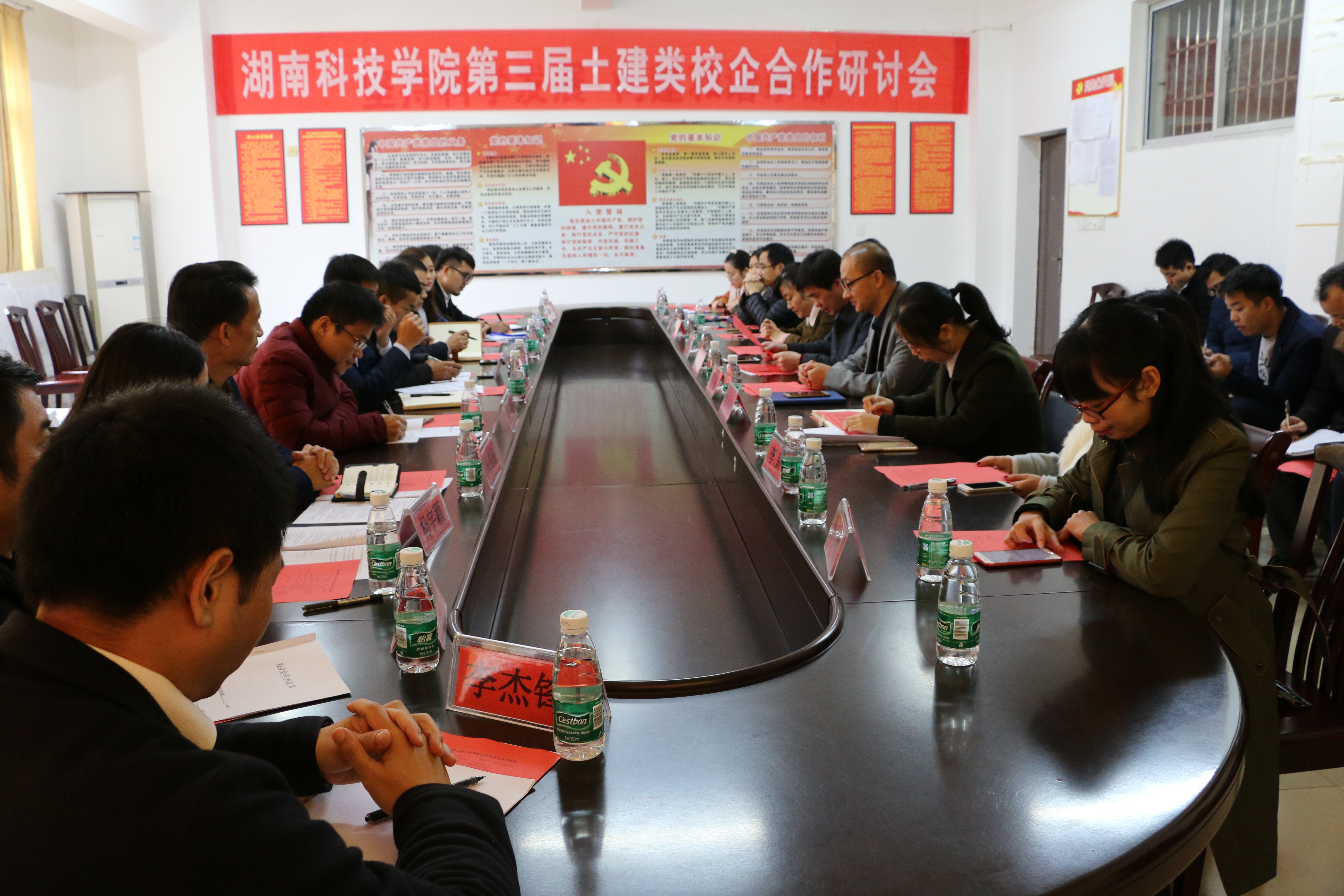 本网讯 12月2日下午,我校举行第三届土建类校企合作研讨会,中铁港航局、中铁大桥局、中建五局、永州市财政投资评审中心、永州市城建投等十一家企事业单位代表出席。土木与环境工程学院党总支书记张俭民主持会议。