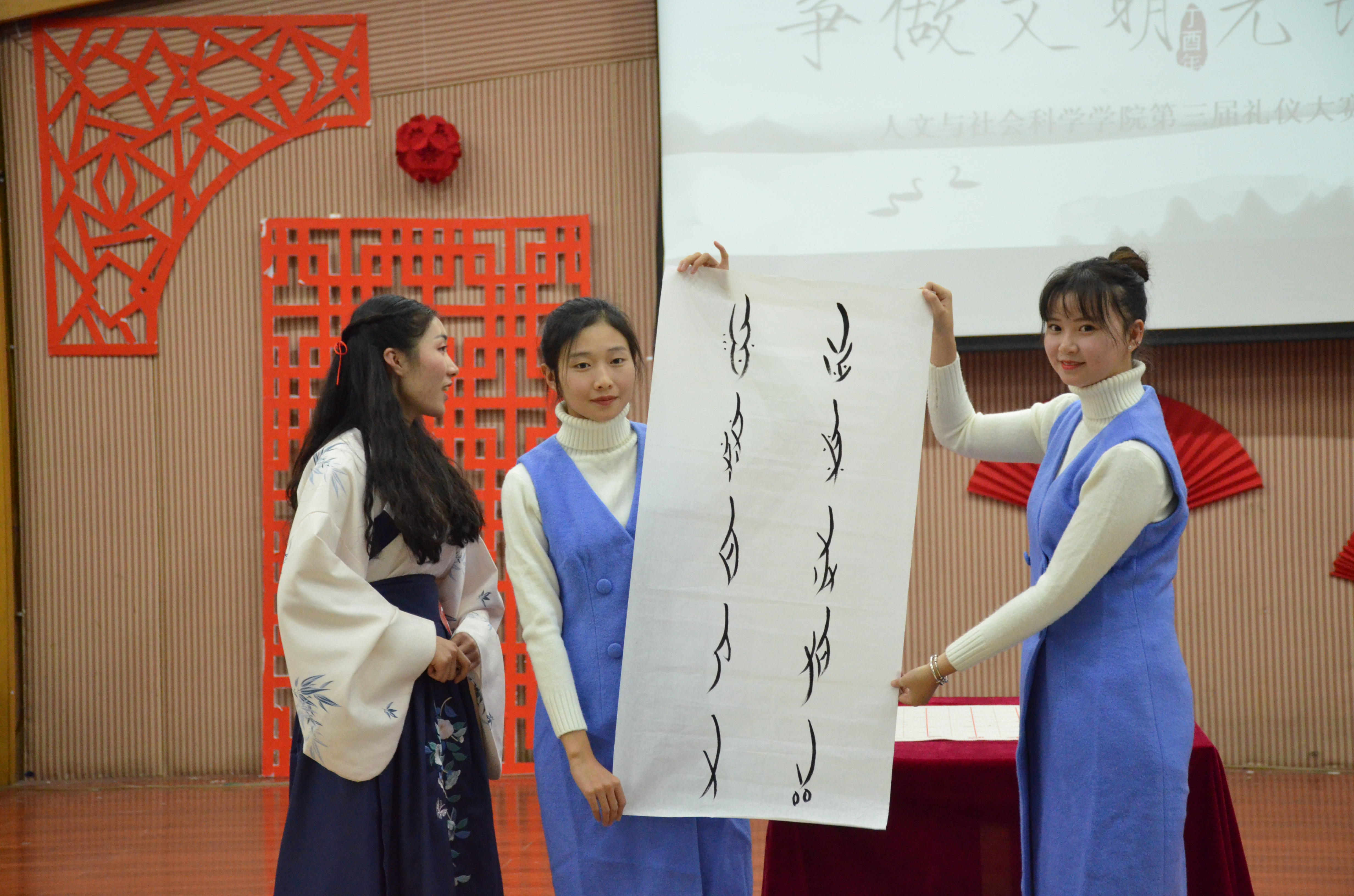 本网讯 为传承中华礼仪,弘扬中华民族优秀传统文化,11月27日晚,人文与社会科学学院在明德楼二楼报告厅举办第三届礼仪大赛。党委宣传统战部部长杨涛以及该院党总支书记谷显明出席并担任评委。