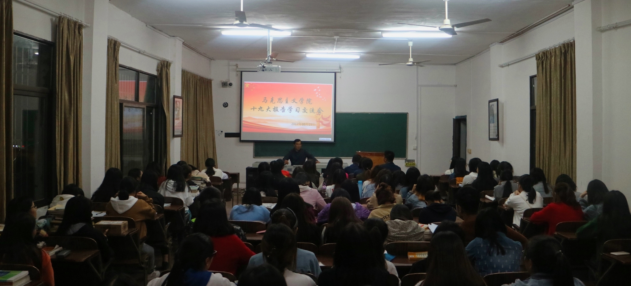 本网讯 10月23日晚,马克思主义学院在鹤鸣楼举办学习党的十九大报告交流会,该院2015级、2016级学生共聚一堂,畅所欲言,分享交流学习十九大报告的心得体会。