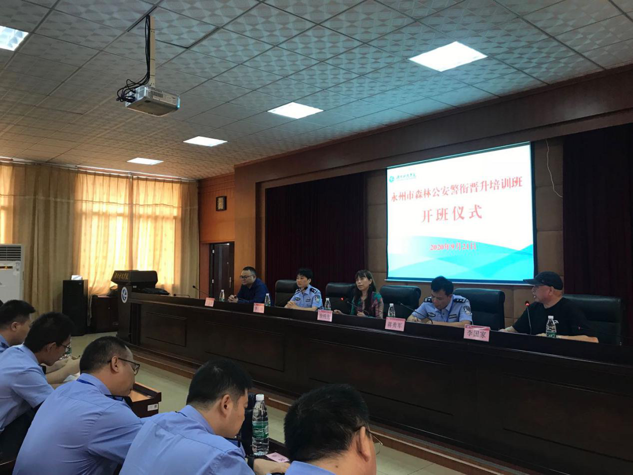 本网讯 9月21日,永州市森林公安警衔晋升专题培训班开班。继续教育学院院长徐纯先,永州市森林公安局警务科科长李珂参加开班仪式。