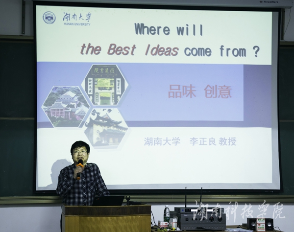 本网讯(通讯员 肖丽 魏雅楠)4月13日晚,湖南省广告协会副会长、全国大学生广告大赛湖南分赛区秘书长、湖南大学新闻传播与影视艺术学院李正良教授应邀作题为“品味创意”的学术讲座。美术与艺术设计学院及传媒学院近200名师生参加。
