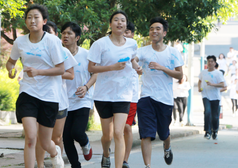 随着一声令下,参赛选手从文化广场分批按照规定路线出发。“彩虹跑”全程设置出发区、彩色站、终点区,共分为五个彩色站:起点——————————绿——终点。每一个颜色的彩色站的跑道外工作人员会向参与者撒播彩粉、喷射彩色水枪,以示鼓励与祝福。参赛选手可以尽情互动,用五彩缤纷的颜色传递友情、释放热情、加深感情,完美诠释跑步带来的自由和欢畅。浩浩荡荡的奔跑队伍为校园增添了一道靓丽的彩色风景线。参赛选手还纷纷在签名墙上签字、留影,共同纪念这一美好的运动时刻。