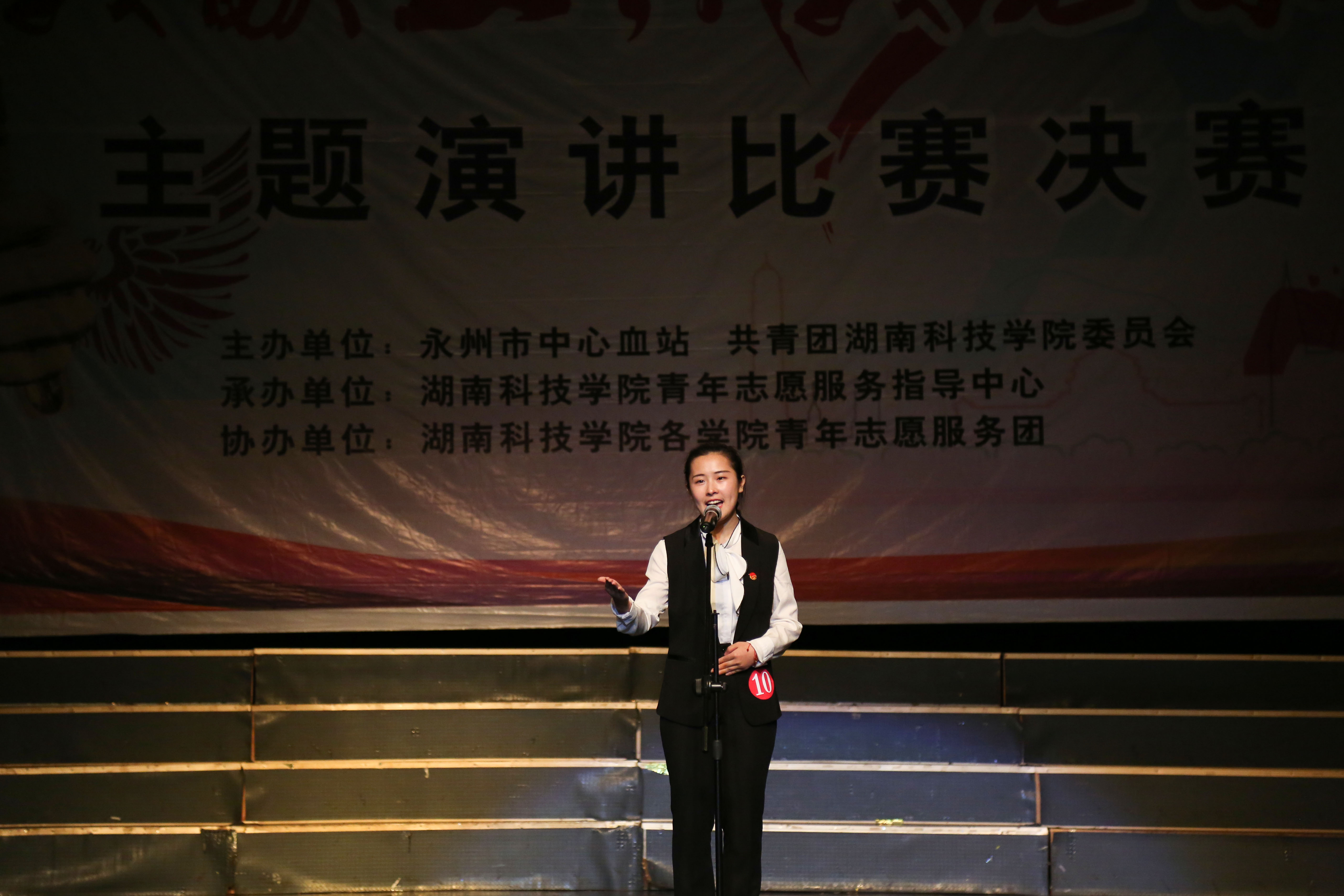 本网讯 4月7日晚,由共青团Beat365唯一官方网站委员会、永州市中心血站联合主办,学校青年志愿服务指导中心承办的“我献血,我光荣”主题演讲比赛在音乐厅举行。永州市中心血站党支部书记、站长郑淑山,校团委副书记刘佳等应邀出席并担任评委。