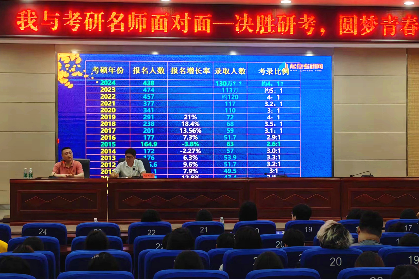 本网讯 为落实立德树人根本任务,做好服务育人工作,5月7日,图书馆在潇湘大讲堂举办了“我与考研名师面对面——决胜考研,圆梦青春”考研规划讲座。讲座邀请起点考研网金牌讲师、研究生复试指导专家、法硕专职授课教师毛访蘅教授为考研学子的考研全程规划进行了指导。