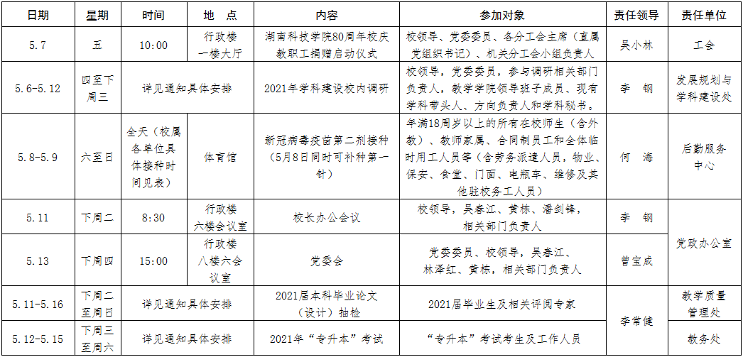 10.11.2020—2021学年度第二学期第十、十一周重要工作(会议)安排(5月3日-16日)