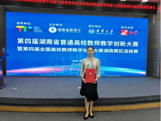 本网讯(通讯员 蒋静)近日,由湖南省教育厅主办的第四届湖南省普通高校教师教学创新大赛在南华大学落下帷幕。我校有5个教学团队参加本次大赛,他们凭借扎实的教学功底、创新的教学理念和独特的教学方法,展现出学校教师优秀的教学水平和创新能力,最终斩获一等奖1项,二等奖1项,三等奖3项,一等奖获奖率在全省同类院校中名列前三,整体获奖率为100%。其中,外国语学院胡维团队获新文科组一等奖,信息工程学院胡蓉团队获新工科组二等奖,经济与管理学院邓凌峰团队获新文科组三等奖、黄超群团队获基础课程组三等奖,土木与环境工程学院黄林华团队获课程思政组三等奖。