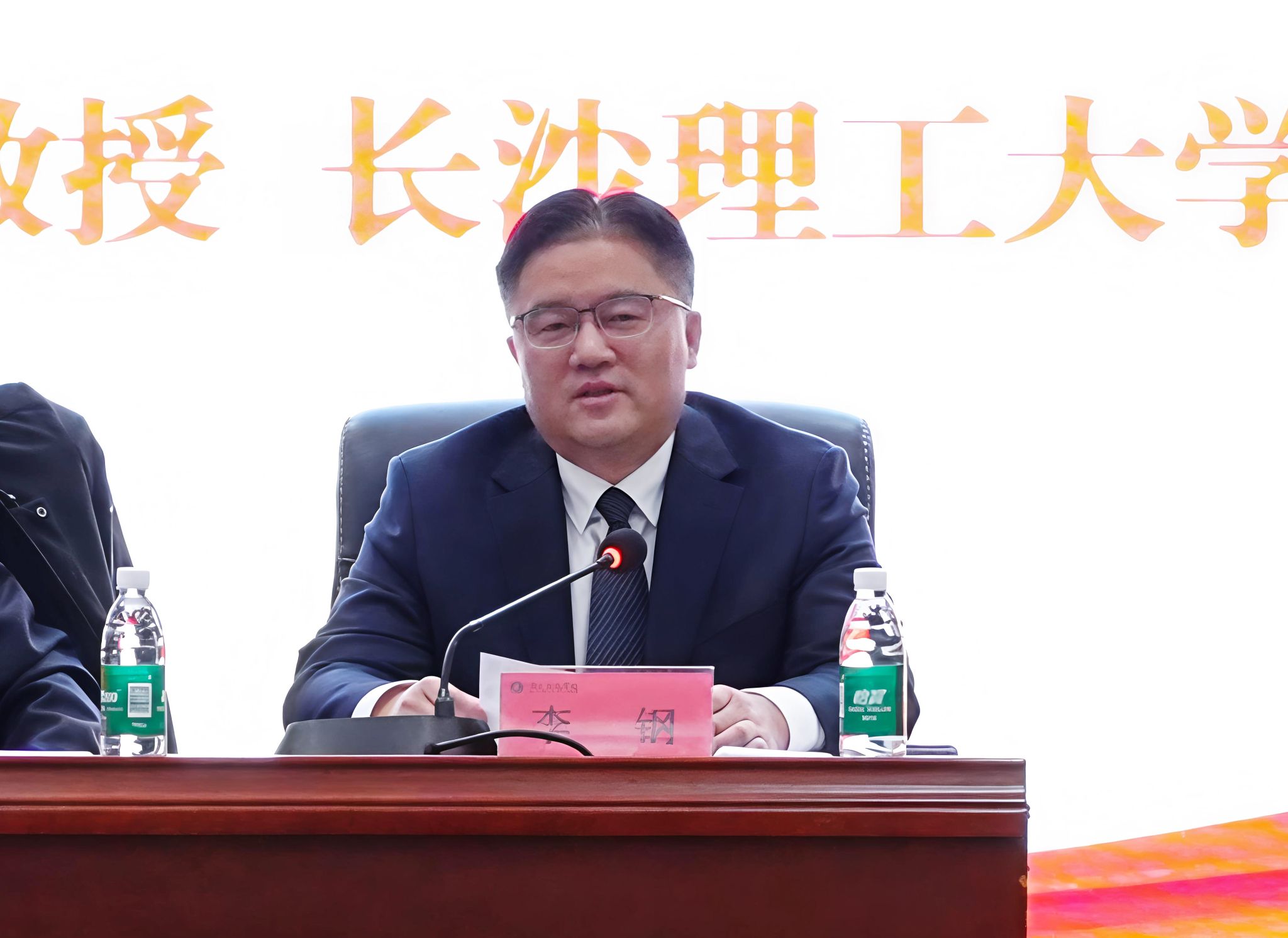 本网讯 1月6日下午,学校党委理论学习中心组(扩大)举行2026年第1次集体学习,特邀长沙理工大学党委书记付宏渊教授来校作题为《全面贯彻党的二十届四中全会精神,推进湖南高等教育高质量发展》的辅导报告。校党委书记李钢,党委副书记、校长黄创霞等全体在校校领导出席报告会。李钢主持报告会。